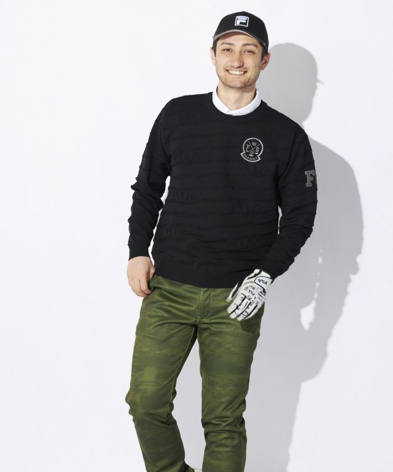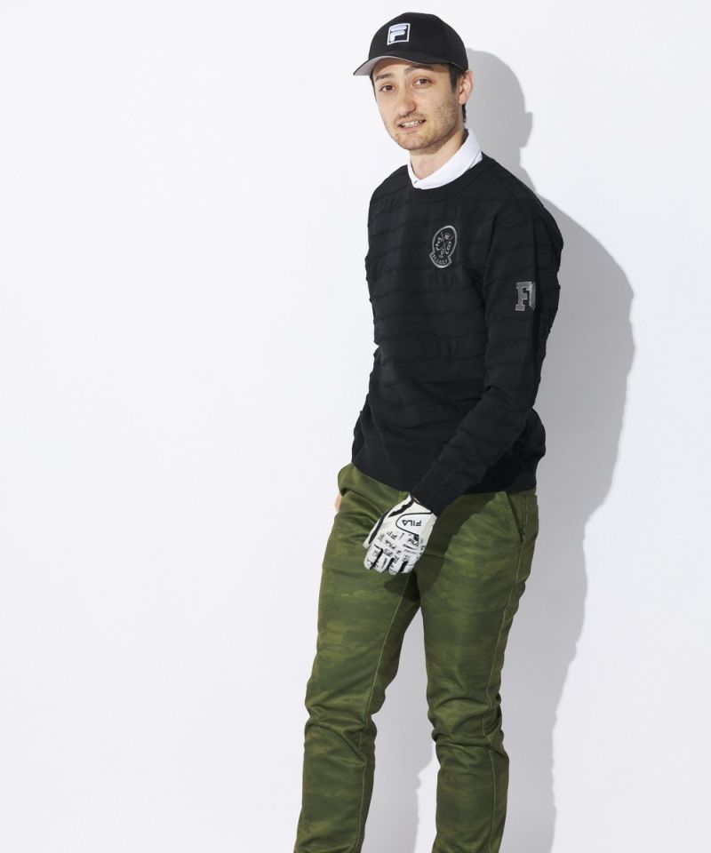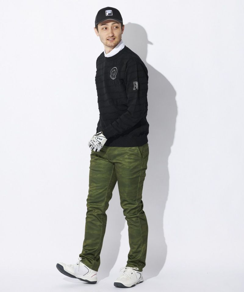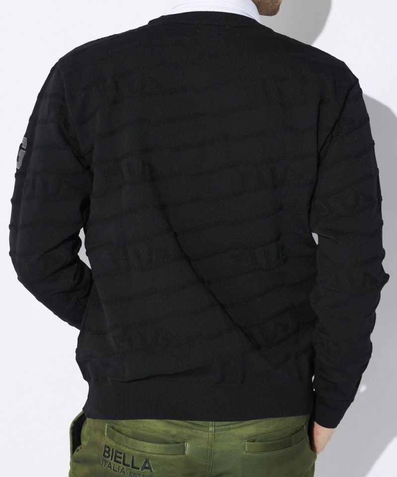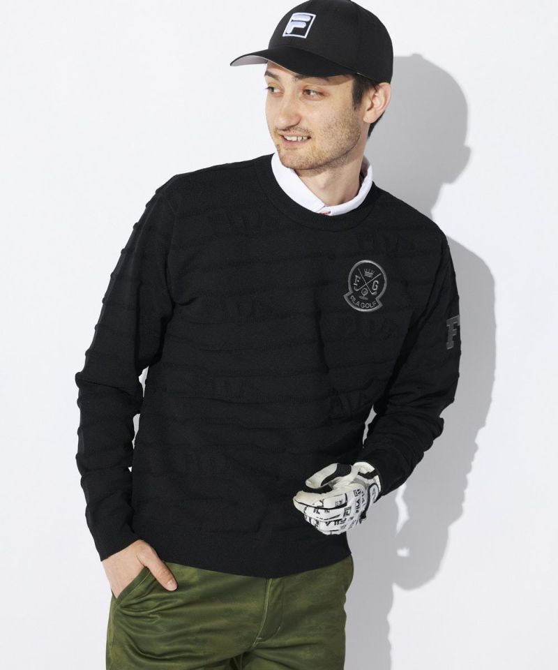 エコに配慮したリサイクル糸を使用。軽くて動きやすいポリエステルニット素材の丸首セーター。天竺と鹿の子で編み立てた1トーンのシンプルで着やすいアイテムです。エンブレム刺繍とFGモチーフが入ります。