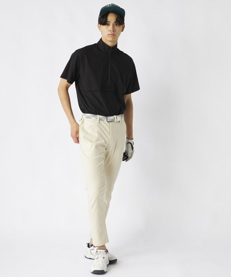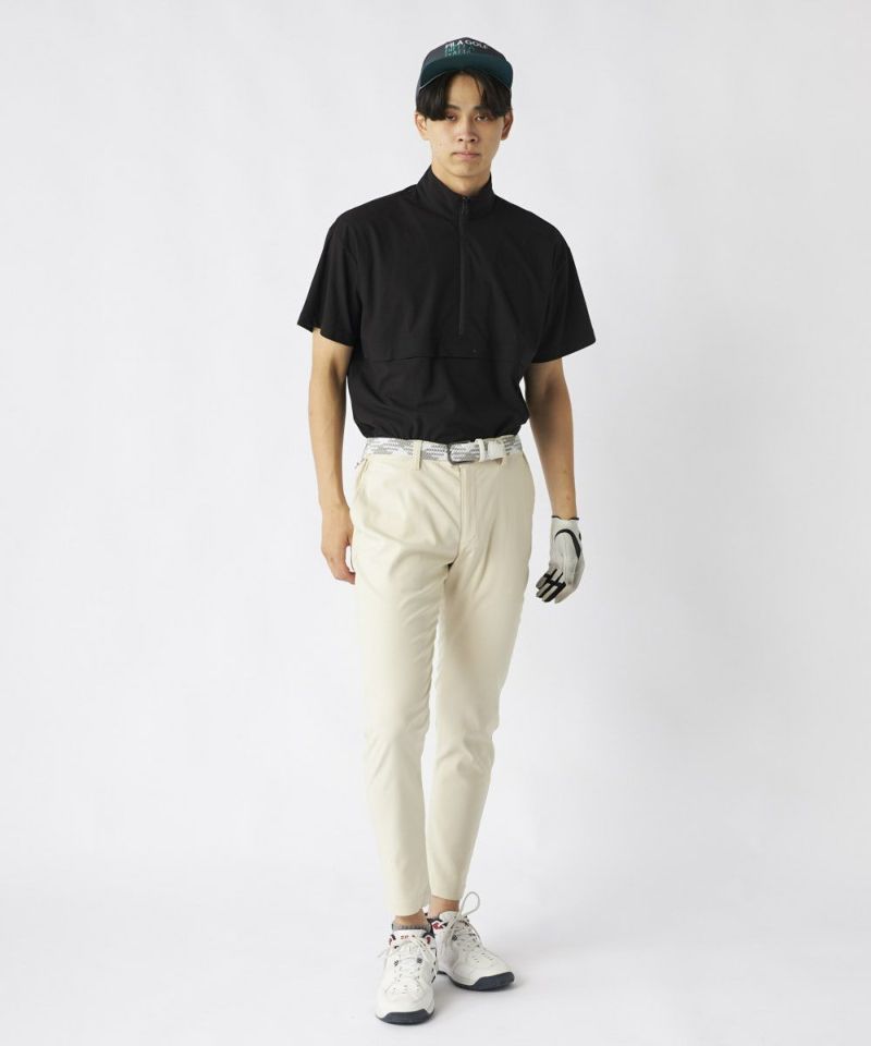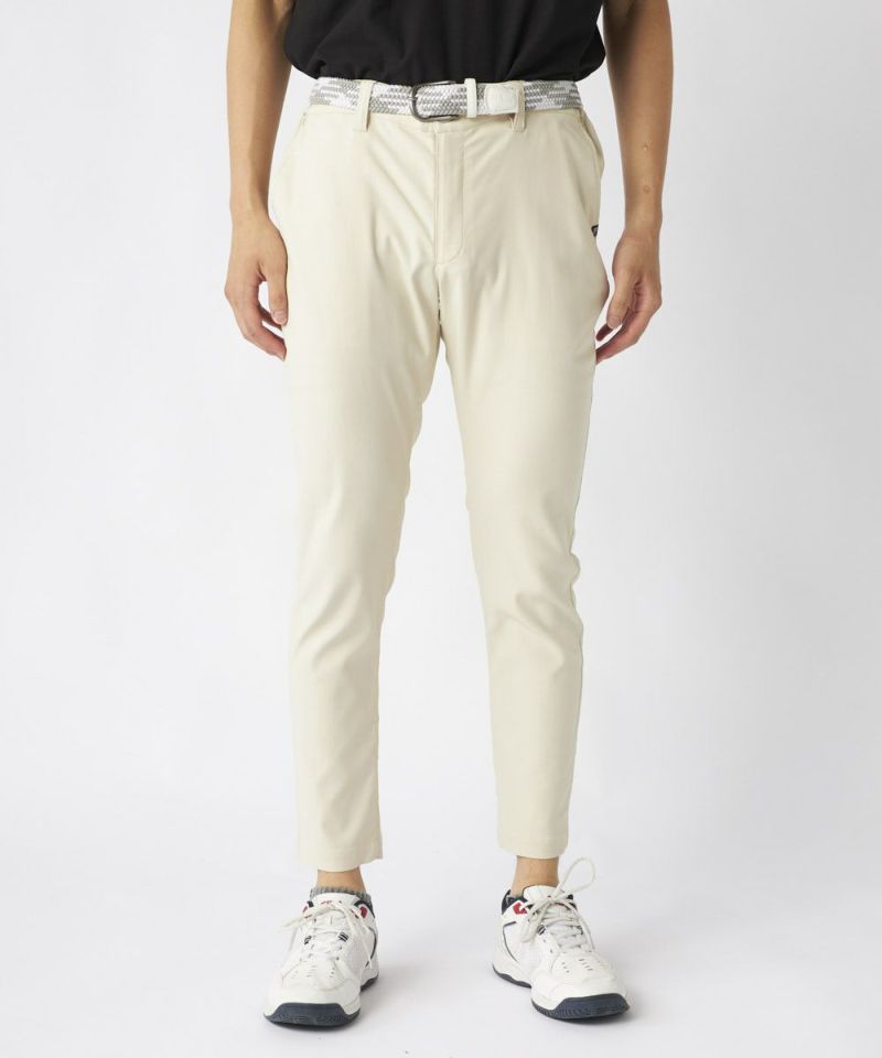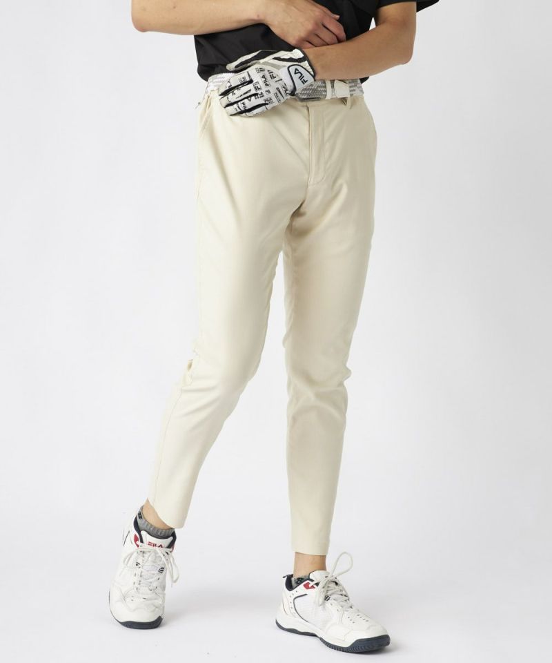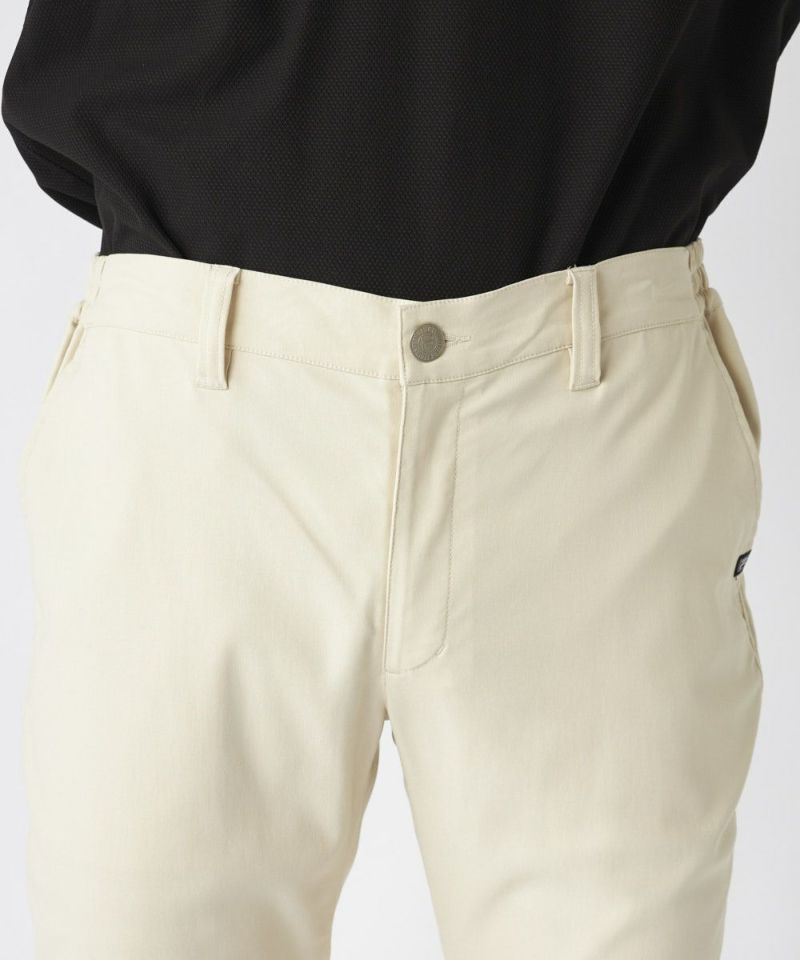裾上げ要らずの9分丈に設計された細身のテーパードシルエットが特徴。脚のラインをすっきりと美しく見せ、洗練された大人のゴルフスタイルを演出します。ウエストはシャーリング仕様でゆったりと履け、腰裏にはシャツが出にくい滑り止め、さらにオリジナルDカンを装備するなど、プレー中の快適性に徹底的にこだわりました。