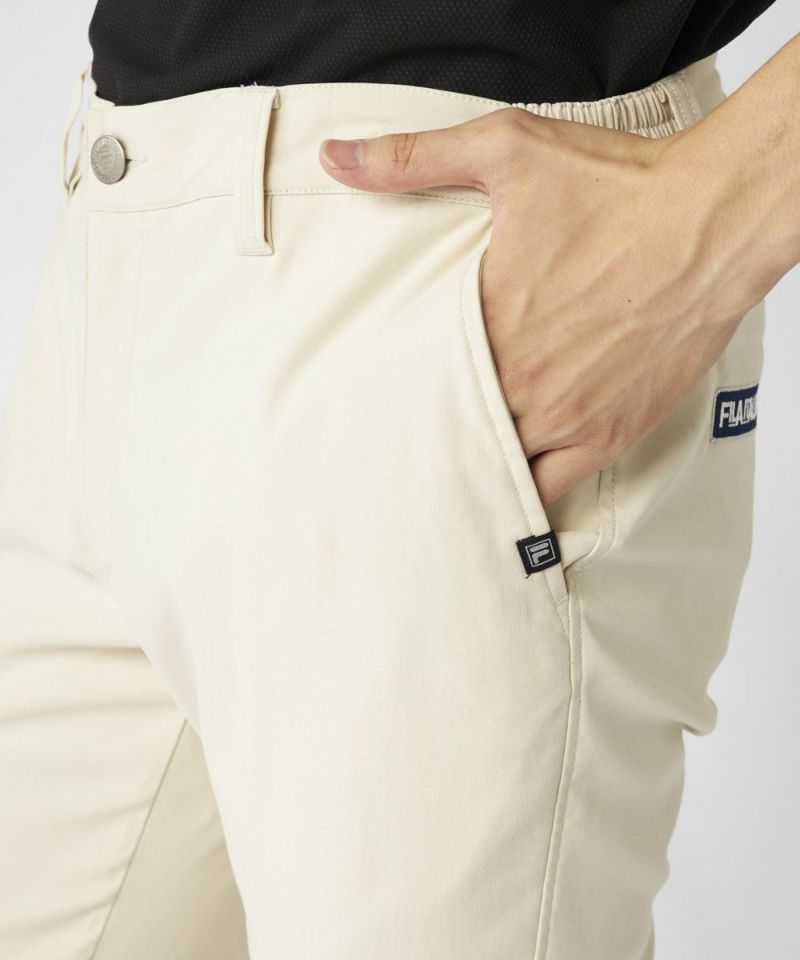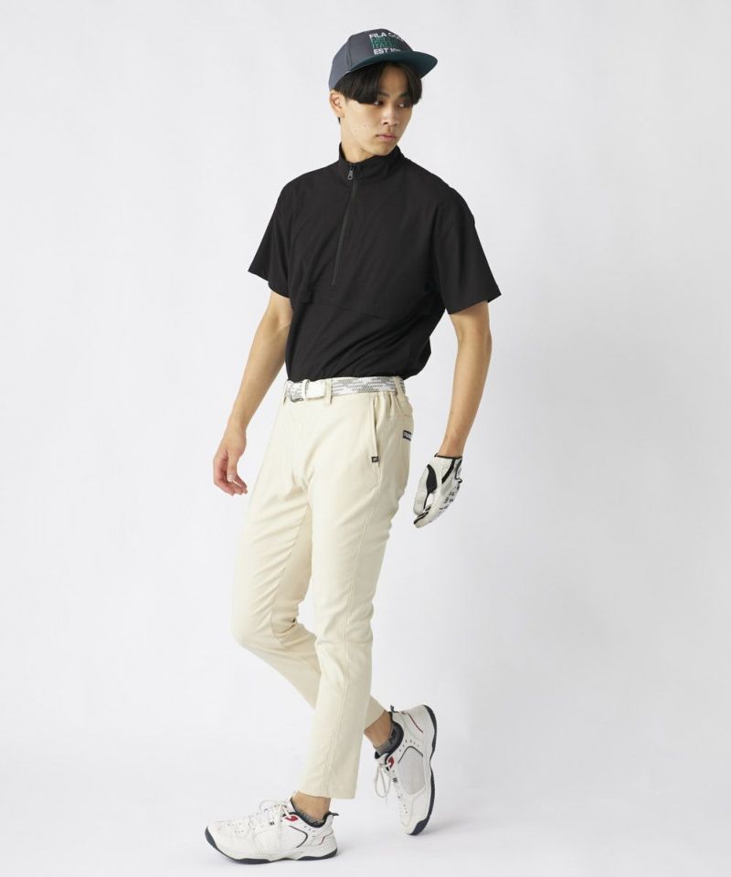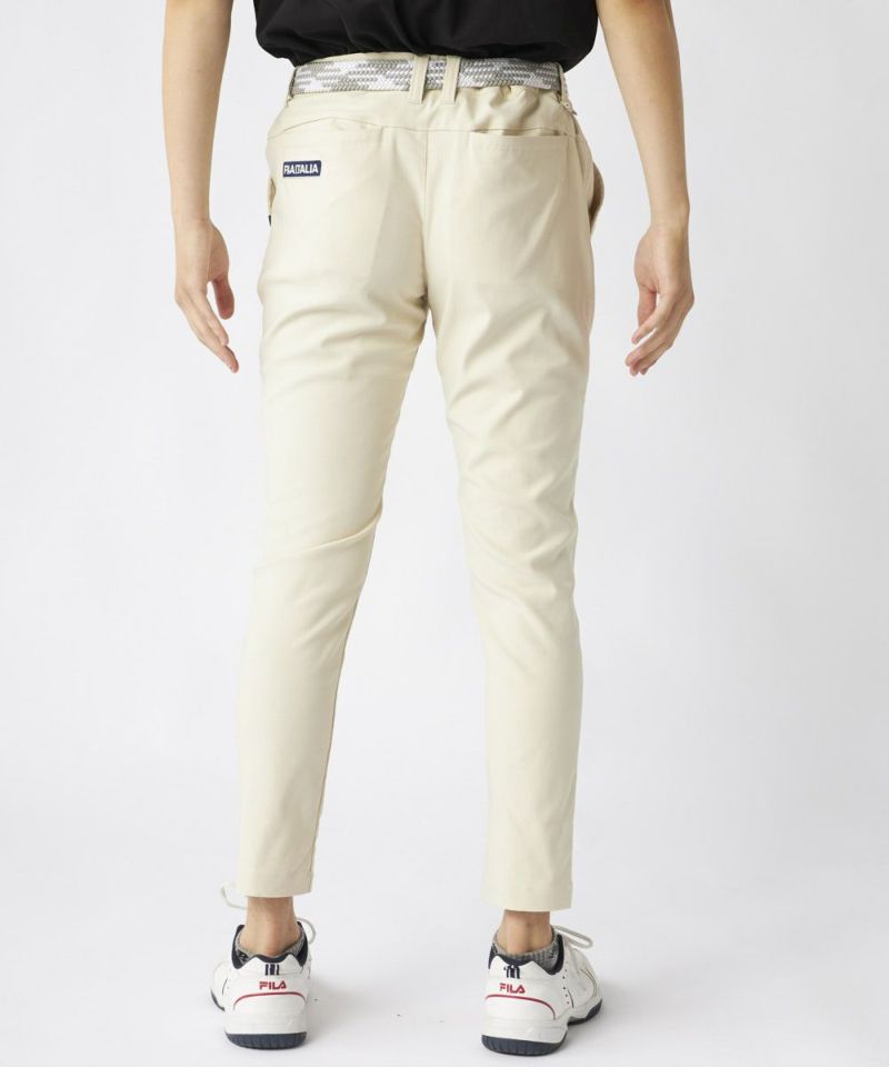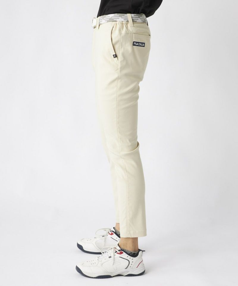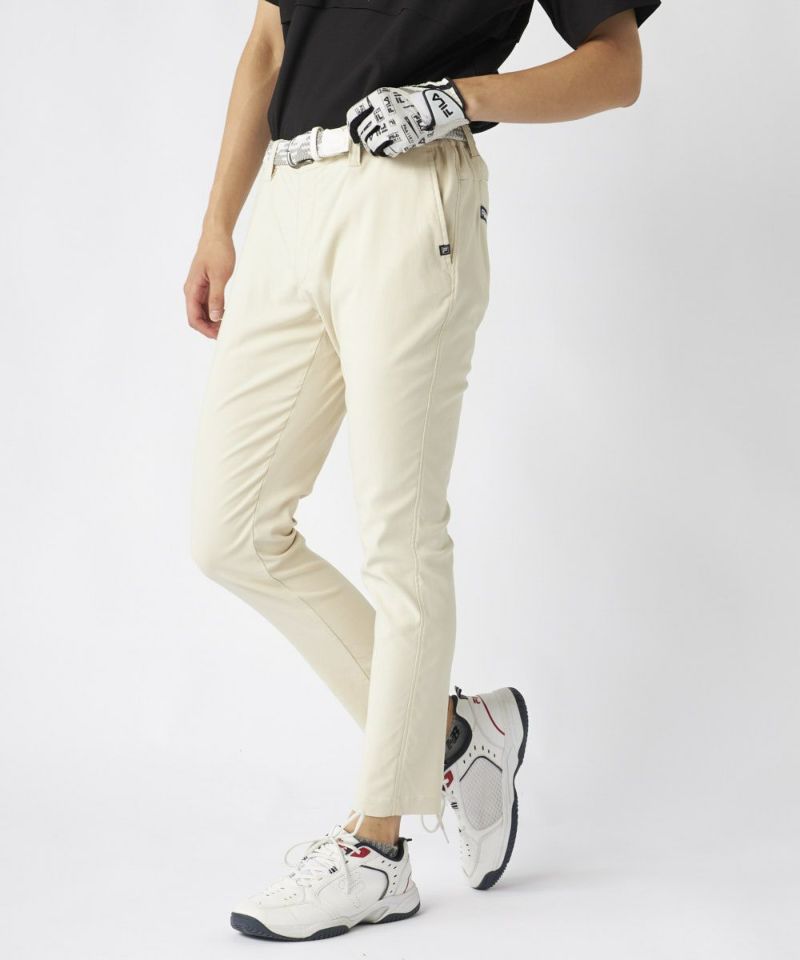 裾上げ要らずの9分丈に設計された細身のテーパードシルエットが特徴。脚のラインをすっきりと美しく見せ、洗練された大人のゴルフスタイルを演出します。ウエストはシャーリング仕様でゆったりと履け、腰裏にはシャツが出にくい滑り止め、さらにオリジナルDカンを装備するなど、プレー中の快適性に徹底的にこだわりました。