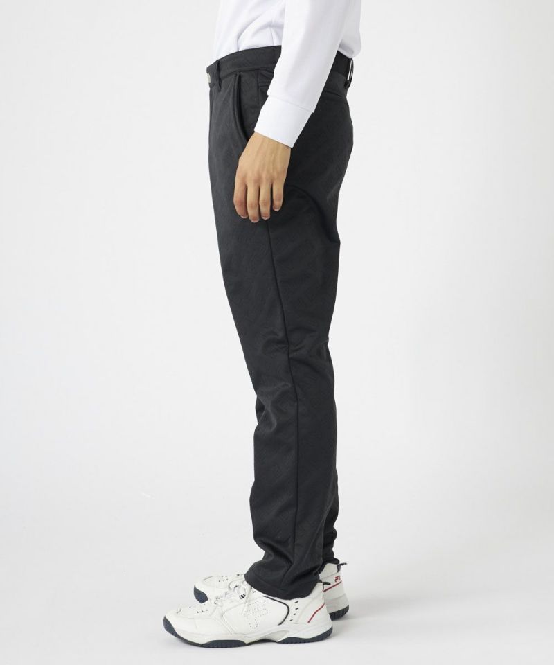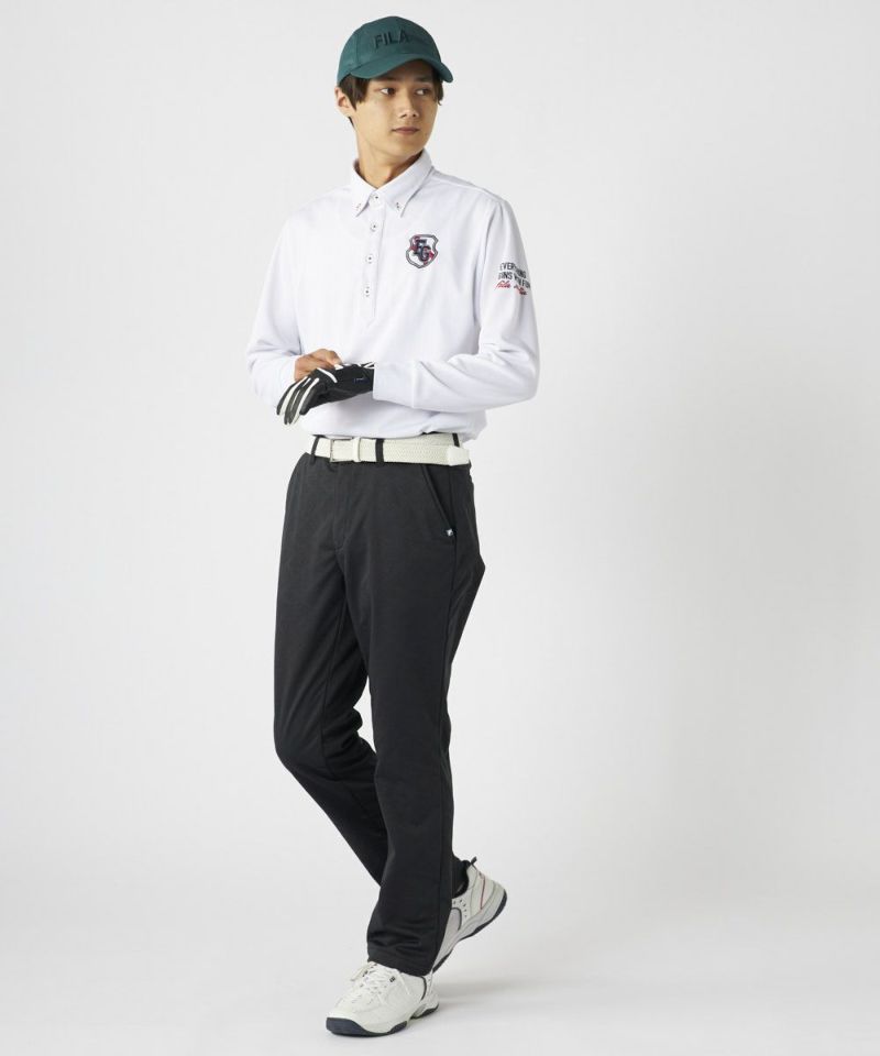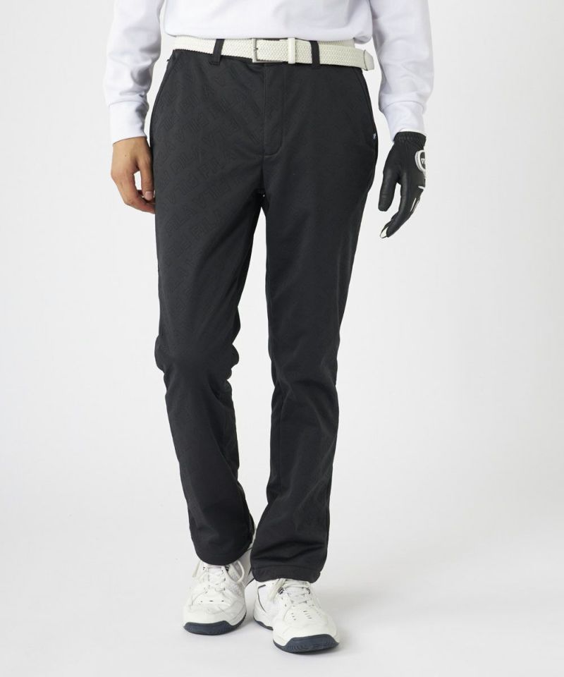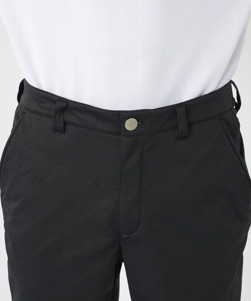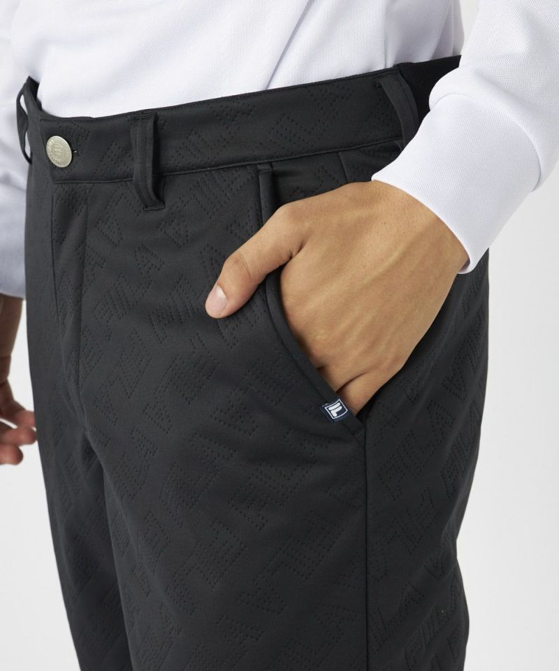 ストレッチ性の高いFILAオリジナル柄の高周波キルト3層ボンディング素材を使用したテーパードパンツ。ウエストはリブゴム仕様で着用しやすく、腰裏の滑り止めでシャツが出にくい仕様。オリジナルDカン付き。