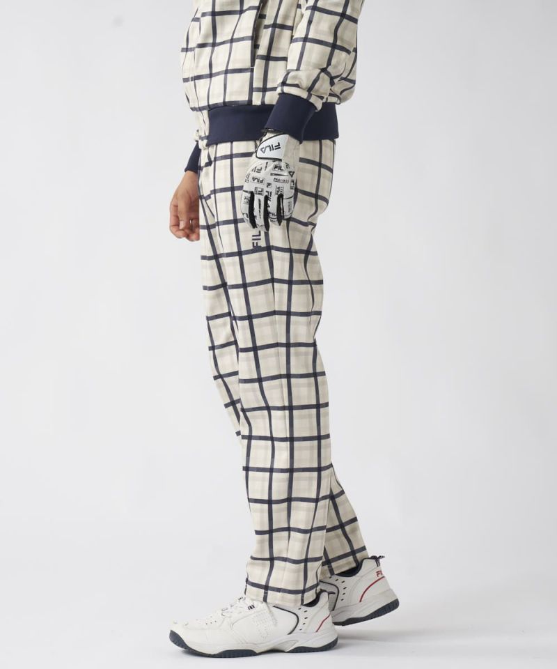 機能性パンツでありながら、着膨れしないスマートなシルエットが特徴です。足首にかけて緩やかにフィットする洗練されたデザインで、都会的な印象を与えます。ディテールにもこだわり、スポーティすぎないFILAらしい上品なルックスは、大人のゴルファーにふさわしい仕上がりです。