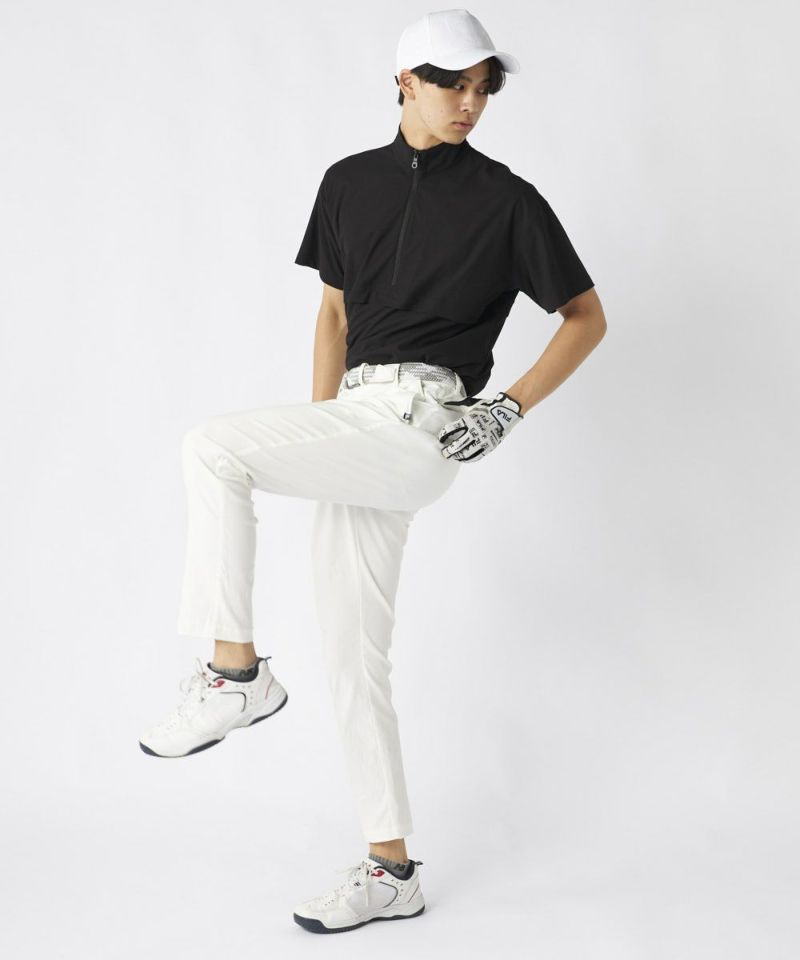 見た目はカジュアルなツイル素材ながら、驚くほどのストレッチ性を秘めたストレッチツイルを採用。スイング時も全くストレスを感じさせません。さらに撥水機能、汗を素早く処理する吸汗速乾性、UVカットも兼ね備え、タフな冬のラウンドを快適にサポートします。