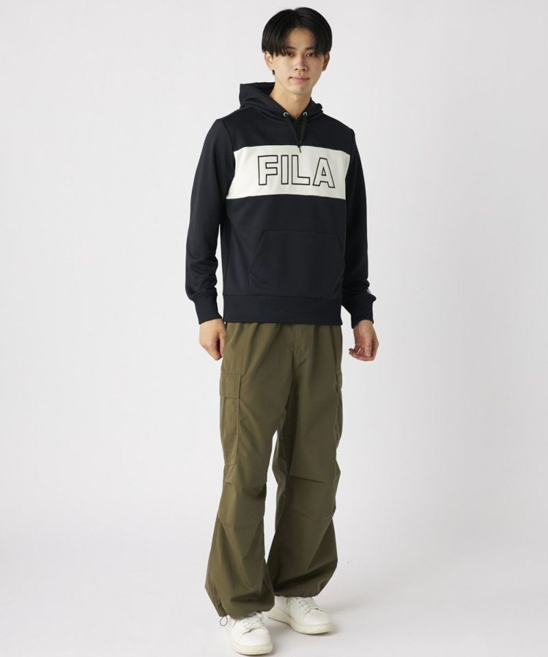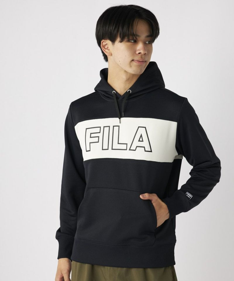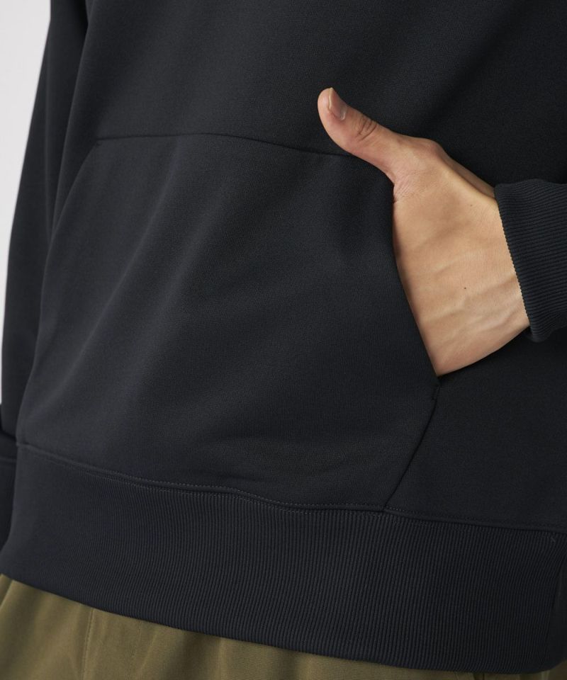 バイカラーがポイントの、裏毛パーカー。カジュアルなゴルフシーンから、普段使いまで幅広くご利用いただけるデザインです。フロントのロゴと、左袖のボックスロゴがポイントになります。