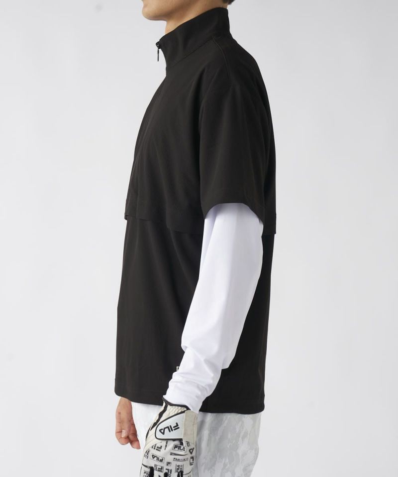 長袖インナーと半袖プルオーバーがセットになった、レイヤード風のデザインが魅力です。ハーフジップ仕様でスポーティな印象を与えつつ、ポップコーンジャガードの繊細な表情が上品なムードを演出。機能性とファッション性を兼ね備えた、FILAらしい一着です。