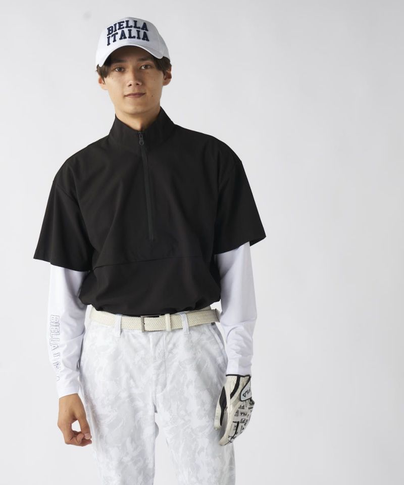 半袖プルオーバーには肌ざわりの良いポップコーンジャガードスムースを使用し、吸汗速乾とUVカット機能でアクティブなプレーをサポート。セットの長袖インナーも薄手ながら暖かく、寒い日のラウンドも快適なコンディションをキープします。