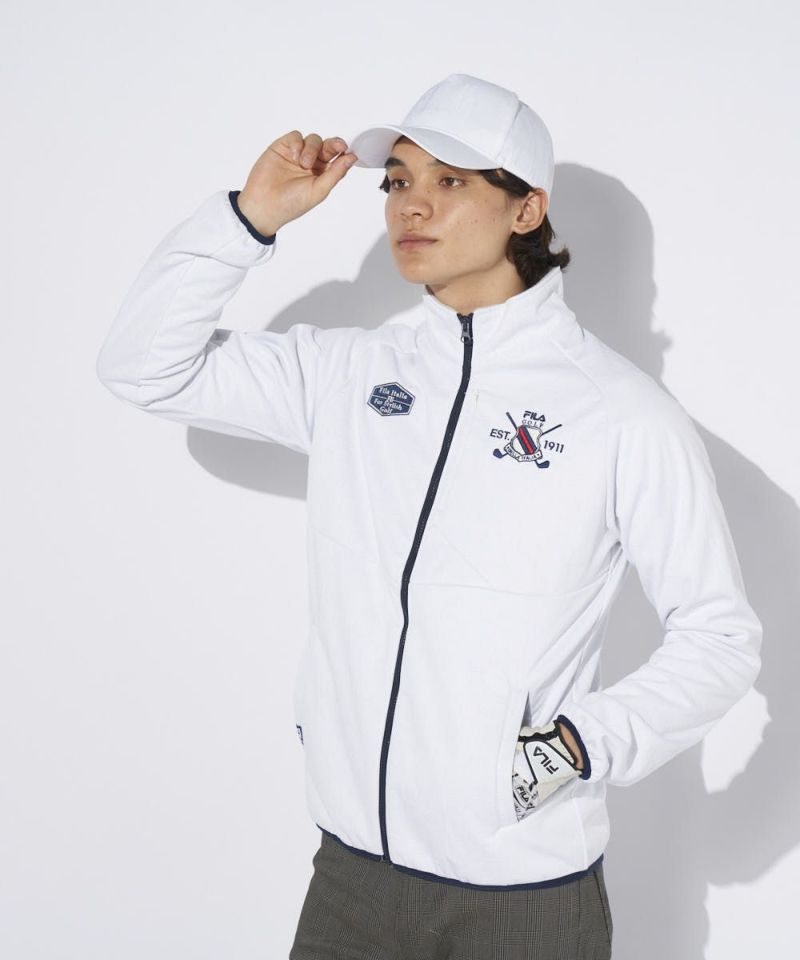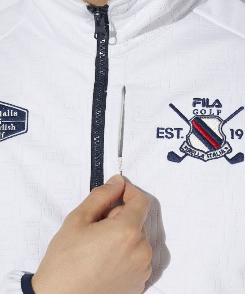 FILA GOLFオリジナルの高周波キルト柄が、シンプルながらも洗練された表情を演出。立体感のあるキルトが都会的なムードを醸し出し、スタイルアップ効果も期待できます。動きやすさを計算し尽くした、機能美あふれるデザインです。