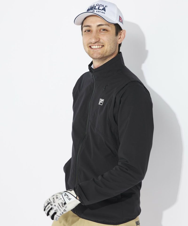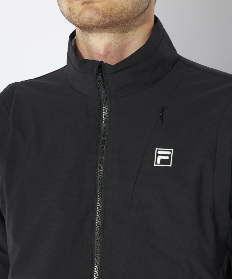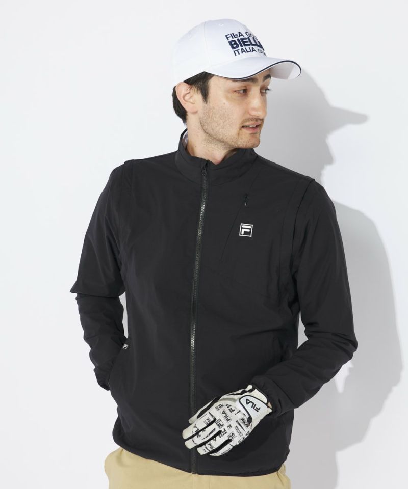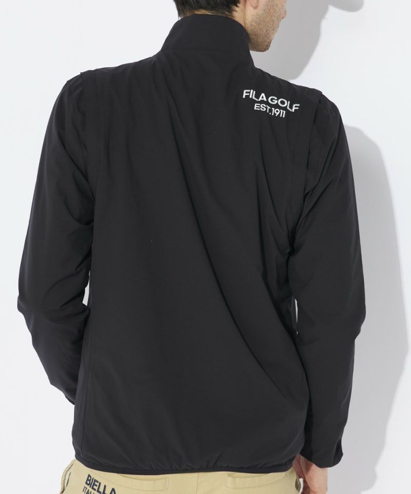 袖部分がジップで取り外し可能な2WAY仕様。ブルゾンとしてもベストとしても着用でき、気温や天候に合わせてスマートに対応できます。デザイン性のある切替が、スタイリッシュな印象を与え、動きの美しさを引き立てます。