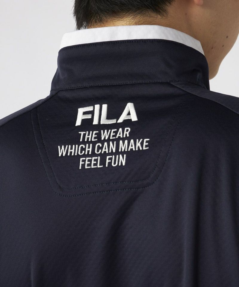 ミニマルでクリーンなデザインが、洗練された都会的なスタイルを演出。ラグランスリーブで肩周りをすっきり見せ、可動域を確保しています。袖口はストレッチバインダー仕様、後ろ裾はリブ仕立てで、風の侵入を防ぎながらスマートなフィット感をキープ。さりげないロゴ刺繍が、FILA GOLFの品格を漂わせます。