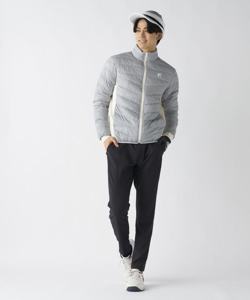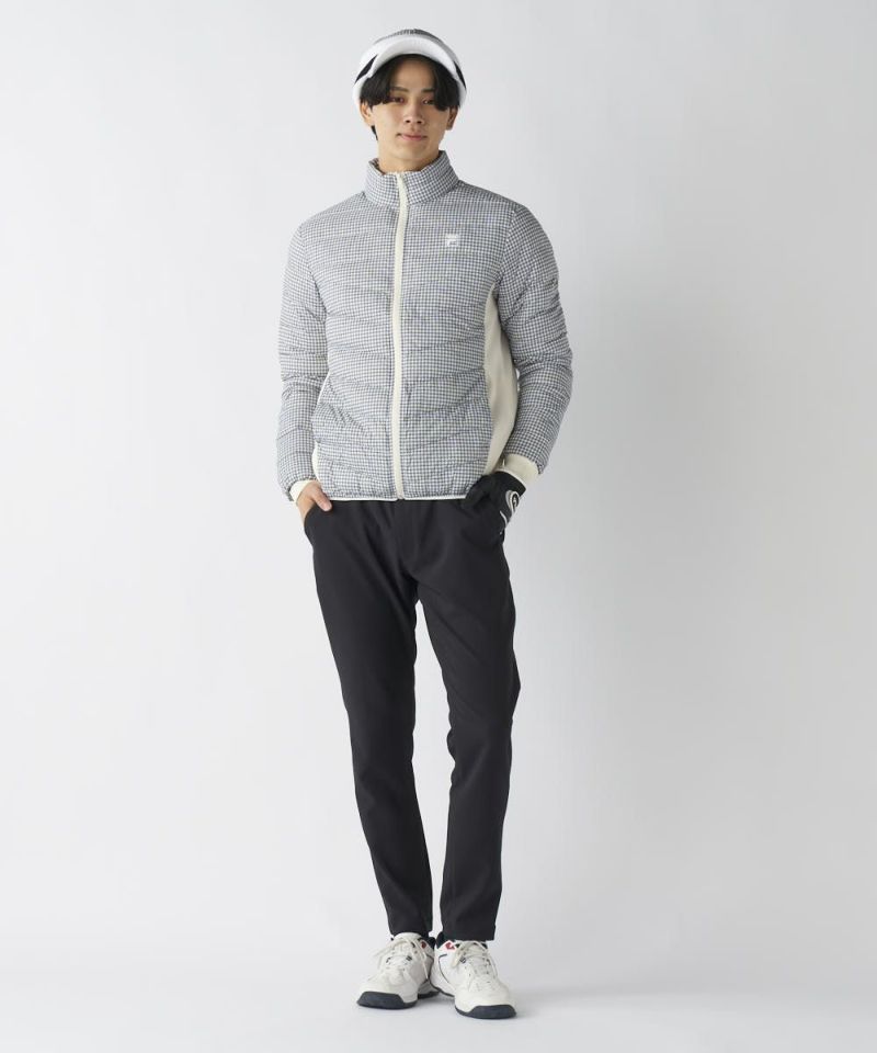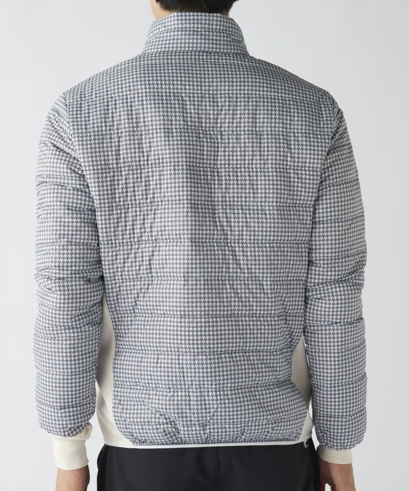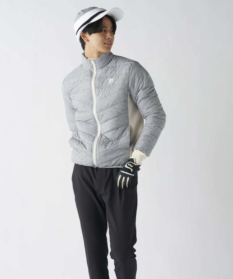 中綿に天然ダウンと高機能ファイバーダウン(Wellon)をブレンドしたハイブリッド中綿を使用。ダウンの優れた保温性をキープしながら、濡れに強く乾きやすいというファイバーダウンの利点を融合。ご自宅での洗濯も可能です。脇部分にはストレッチ素材を大胆に採用し、熱を逃さず、スイング時の体のねじれに軽やかに追従します。