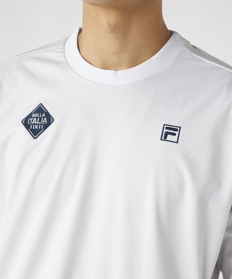 マットな素材感と、FILAらしいスポーティな切替配色が特徴。特に、背中に大胆に施されたFILA GOLFのロゴプリントが、後姿に圧倒的な存在感とブランドの自信を表現します。サイドの配色パイピングがボディラインをシャープに見せ、アクティブでありながら洗練されたルックスを演出します。