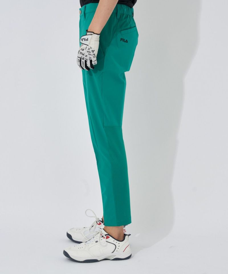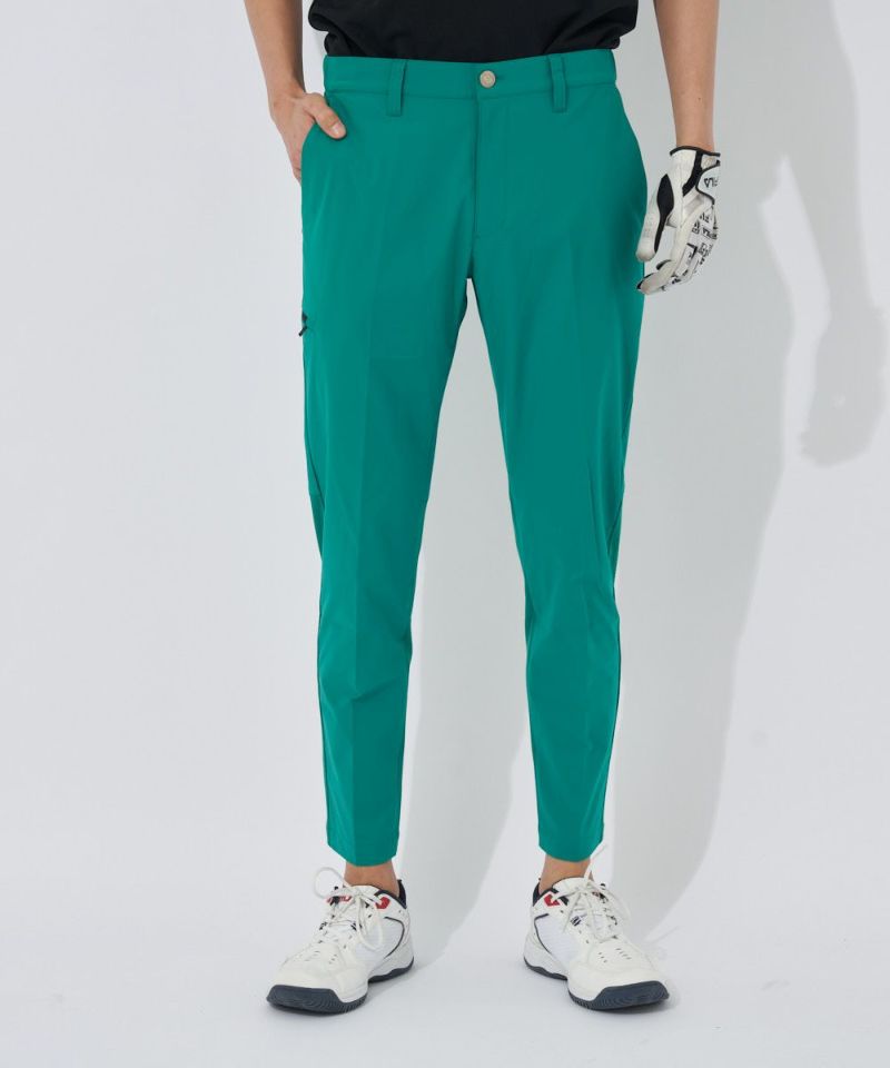 すっきりとしたシルエットで、9分丈のテーパードパンツ。