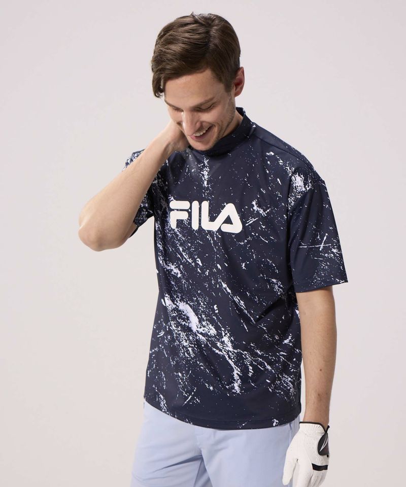 かすれプリント モックネックシャツ | 吸汗速乾・UVカット・接触冷感・ストレッチ
