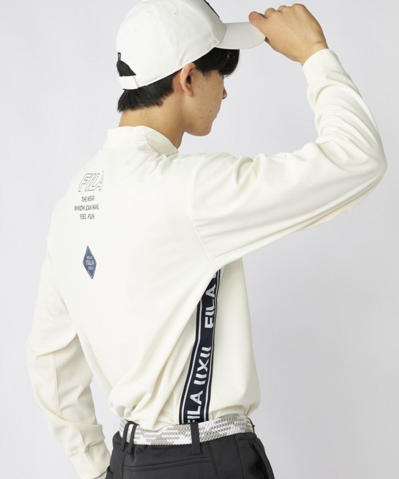 トレンドのモックネックデザインに、大胆なバックプリントとジャガードテープの切替を施し、スタイリッシュな個性を演出します。【SPORTS MIX RELAX LINE】の名の通り、リラックス感と機能性が融合した洗練されたルックス。スイングの動きに合わせてテープのラインが映え、動きの美しさを引き立てます。