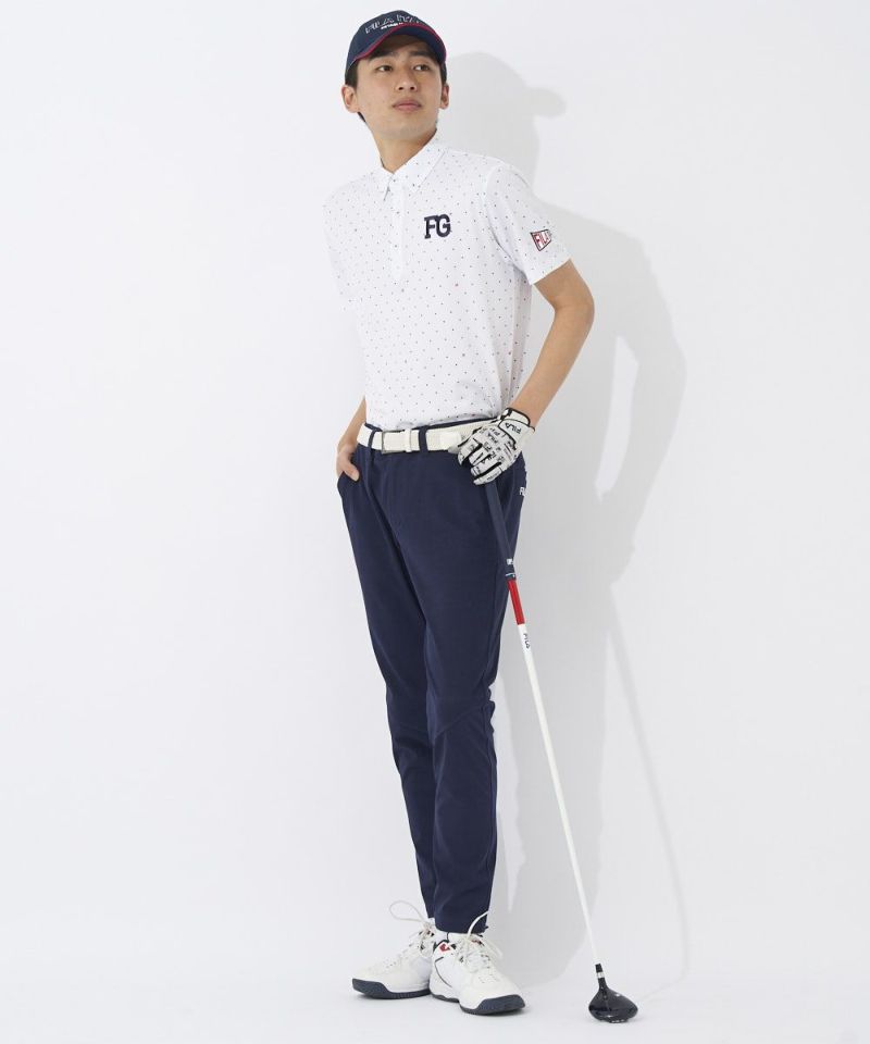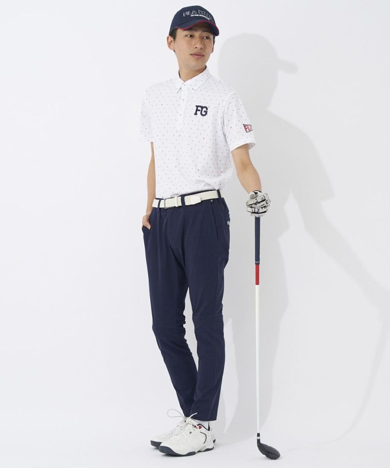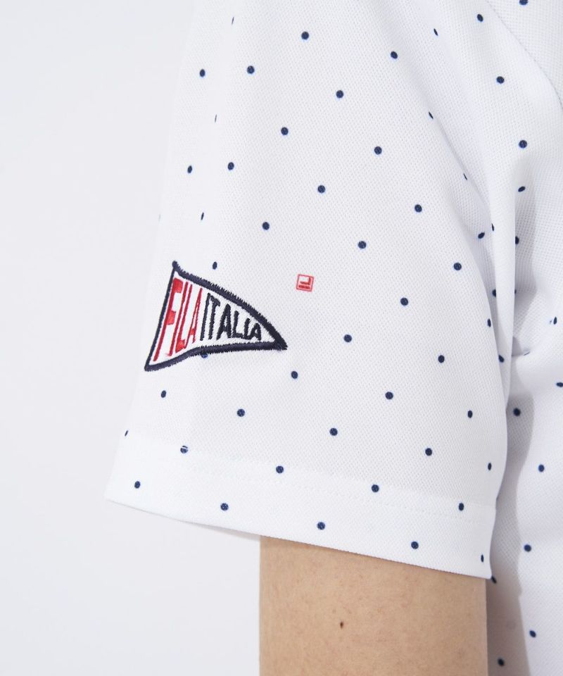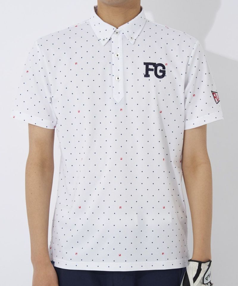 夏をイメージさせるドット柄は、シンプルで合わせやすい半袖シャツに。また、胸元にFG刺繍と左袖にオリジナルカートモチーフ刺繍が入ることで、シンプル過ぎないデザインに仕上がりました。リサイクル素材のカノコを使用することで、夏場でも涼しく過ごせます。裾にスリットを付けて着用時にお腹周りのシワを軽減させます。