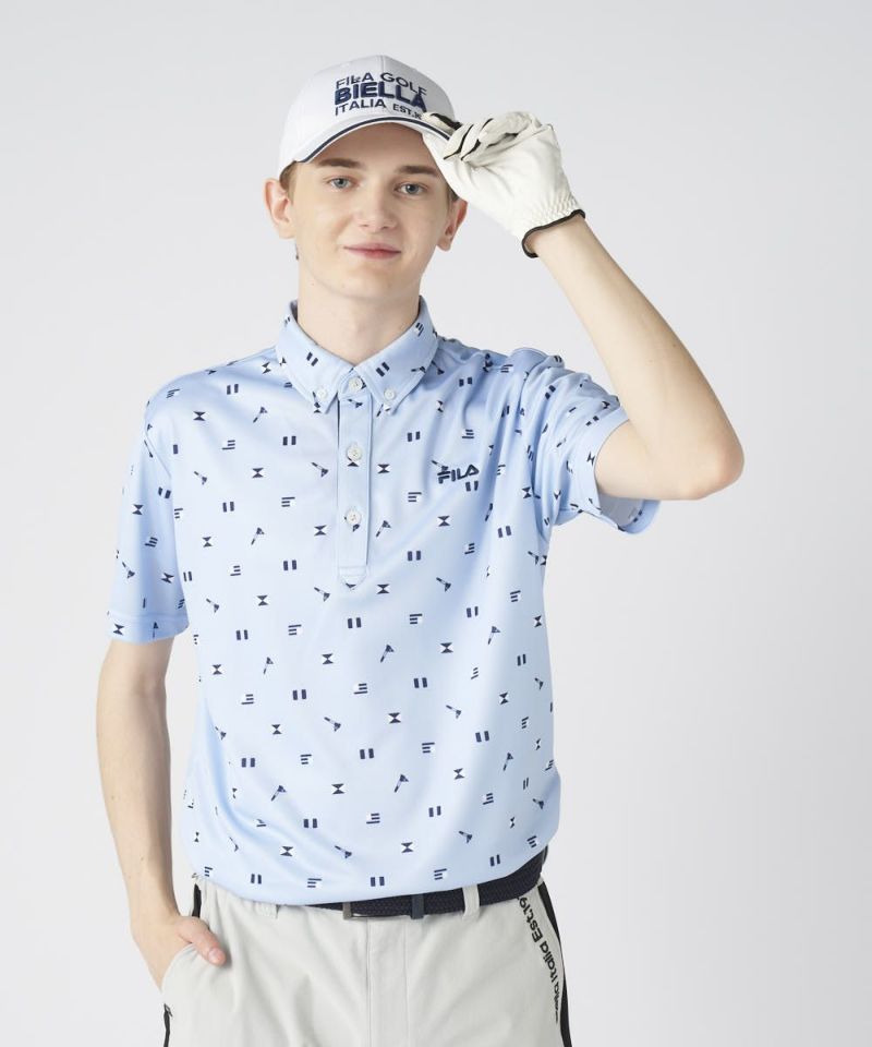フラッグなど、ゴルフにちなんだデザインがちりばめられたおしゃれな半袖シャツ。
