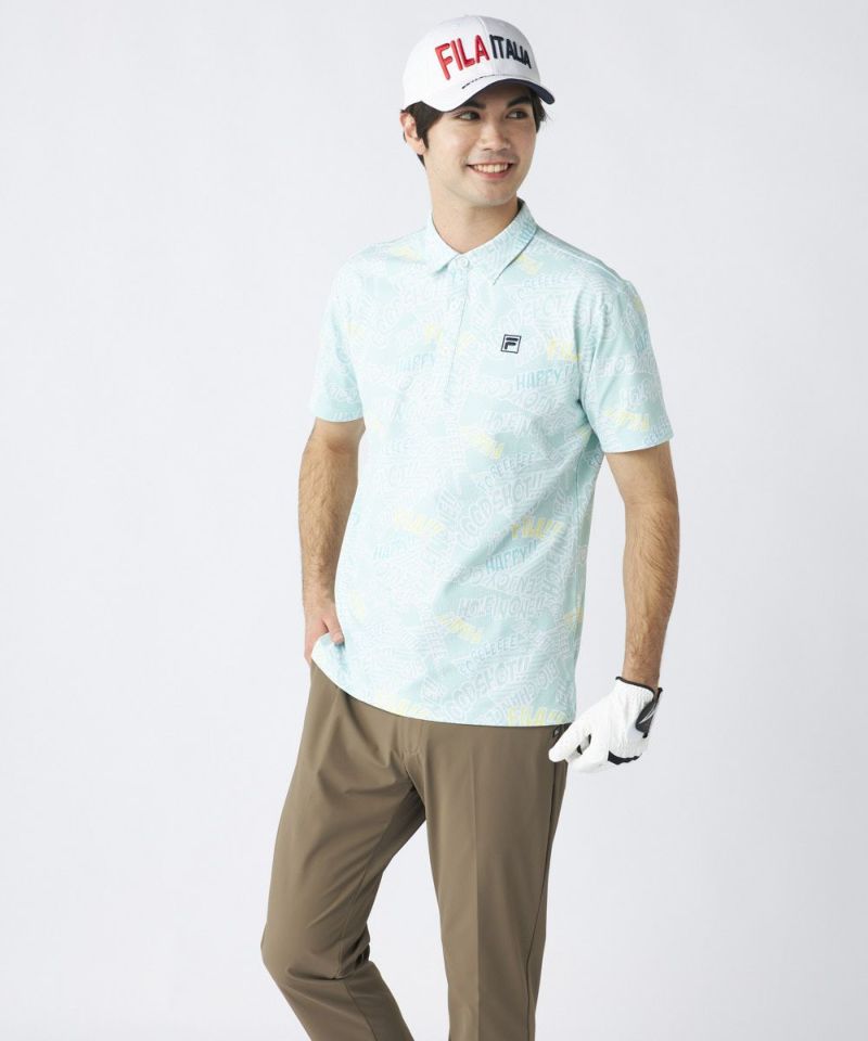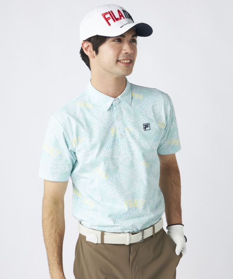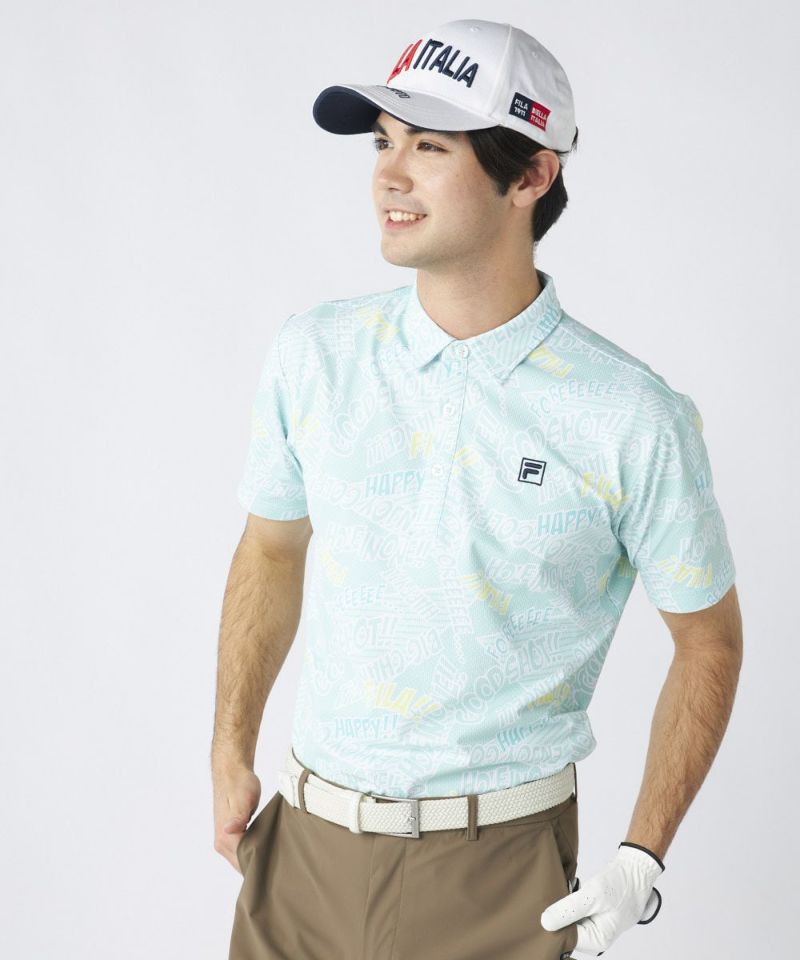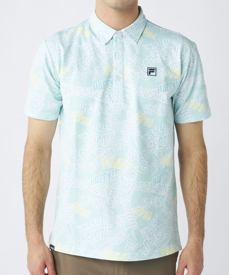 コミック調のデザインが特徴のポップなゴルフシャツです。配色もオシャレなので、ベーシックなボトムスに合わせるだけでおしゃれな印象に!