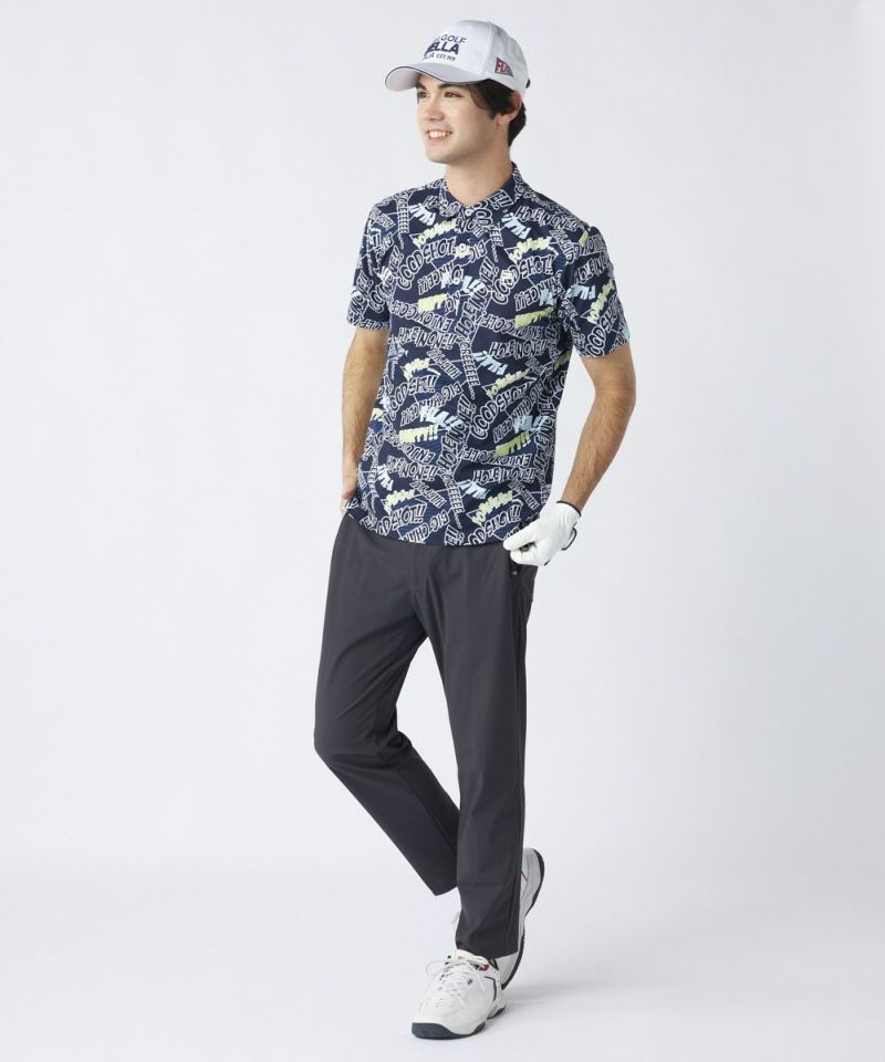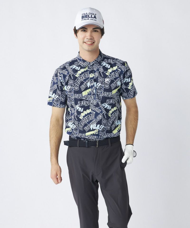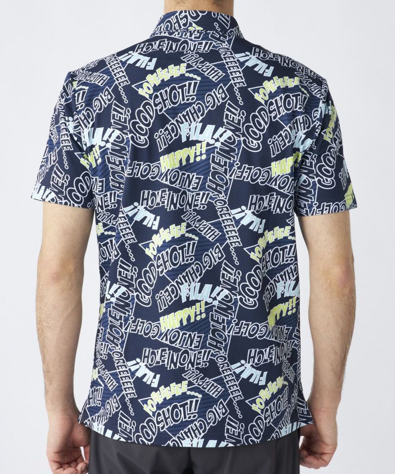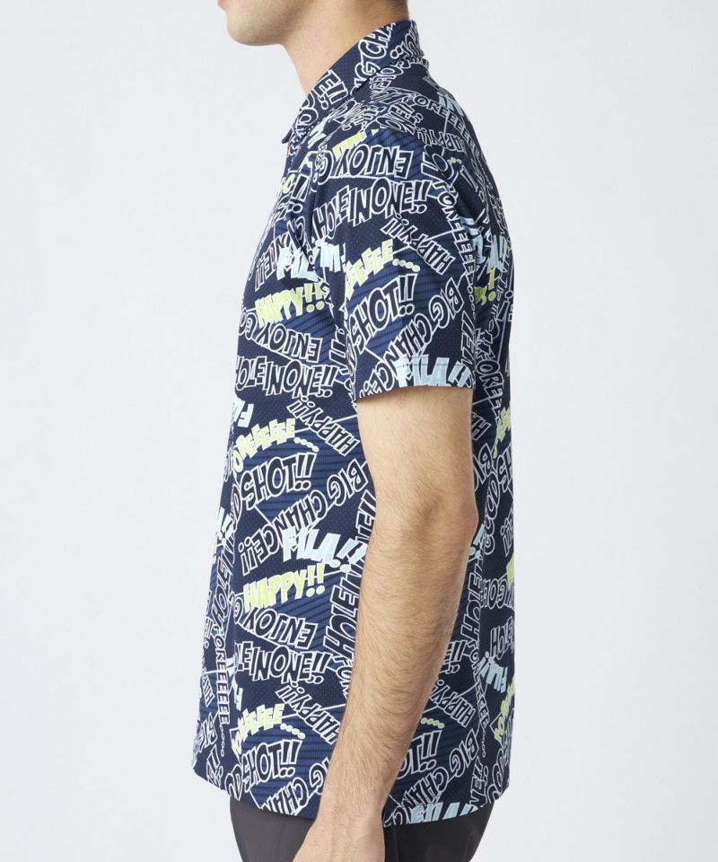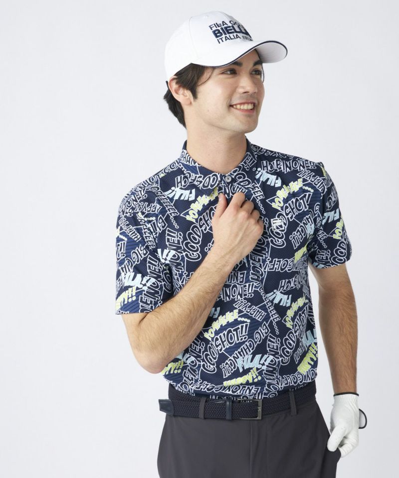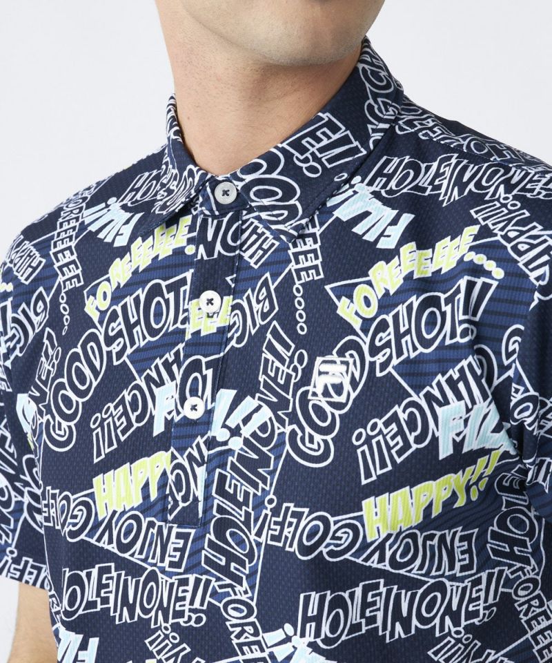 コミック調のデザインが特徴のポップなゴルフシャツです。配色もオシャレなので、ベーシックなボトムスに合わせるだけでおしゃれな印象に!