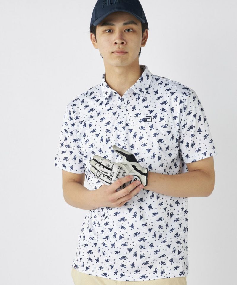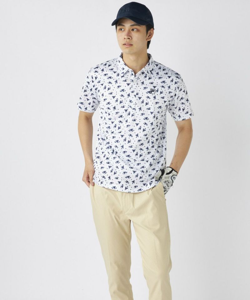 小さい花をちりばめた、さりげなくかわいさもあるゴルフシャツです。さりげなく花柄なのがポイントです。シンプルなパンツと合わせておしゃれにコーディネートを楽しみましょう。