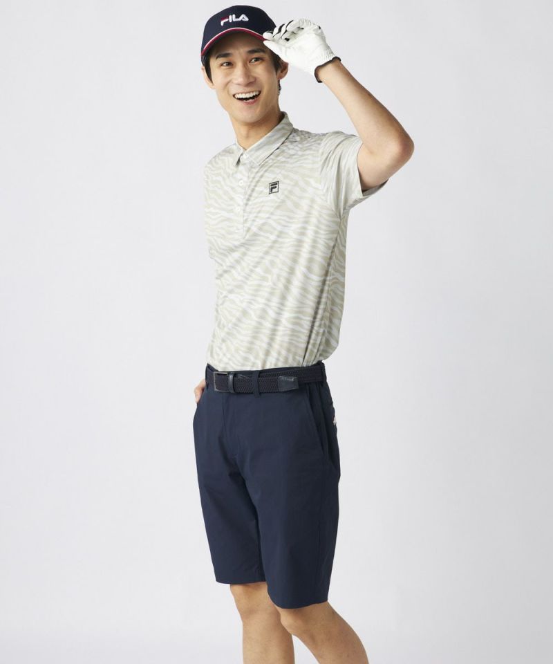 ゼブラ柄風の柄が特徴のオシャレなゴルフシャツです。ベーシックカラーからコーデのポイントになるグリーンと、お好みに合わせてお選びいただけます。ベーシックなボトムスとの相性のよいポロシャツです。