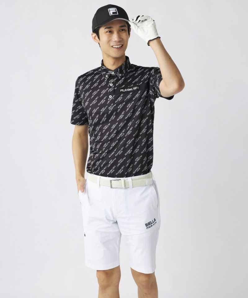 ロゴ柄ががおしゃれな半袖シャツ。柄シャツの中でも、ゴルフ以外でも着やすいデザインで、普段使いにもおすすめです。ベーシックカラーなので、カラーボトムスとのコーディネートも楽しめます。