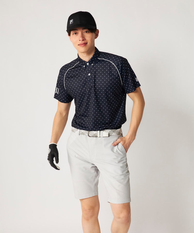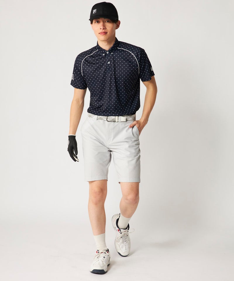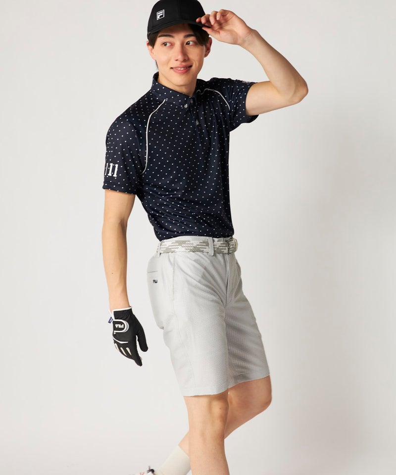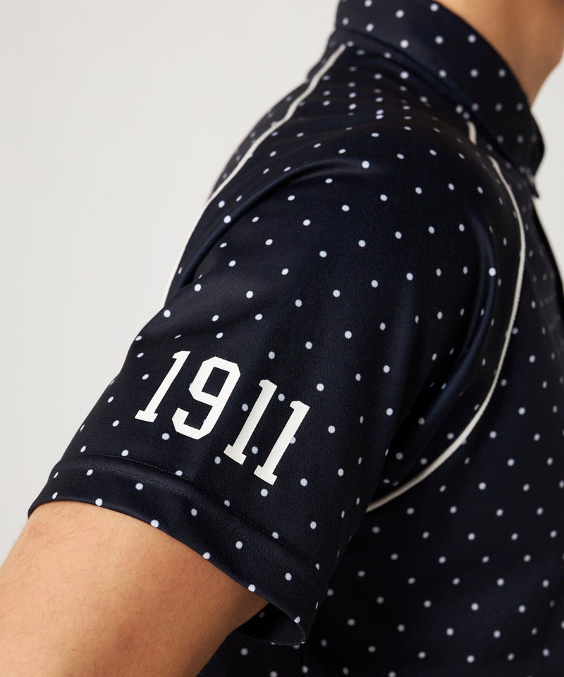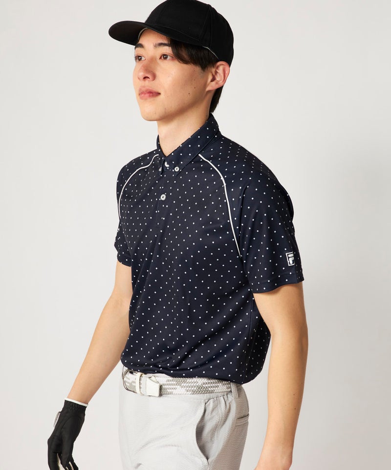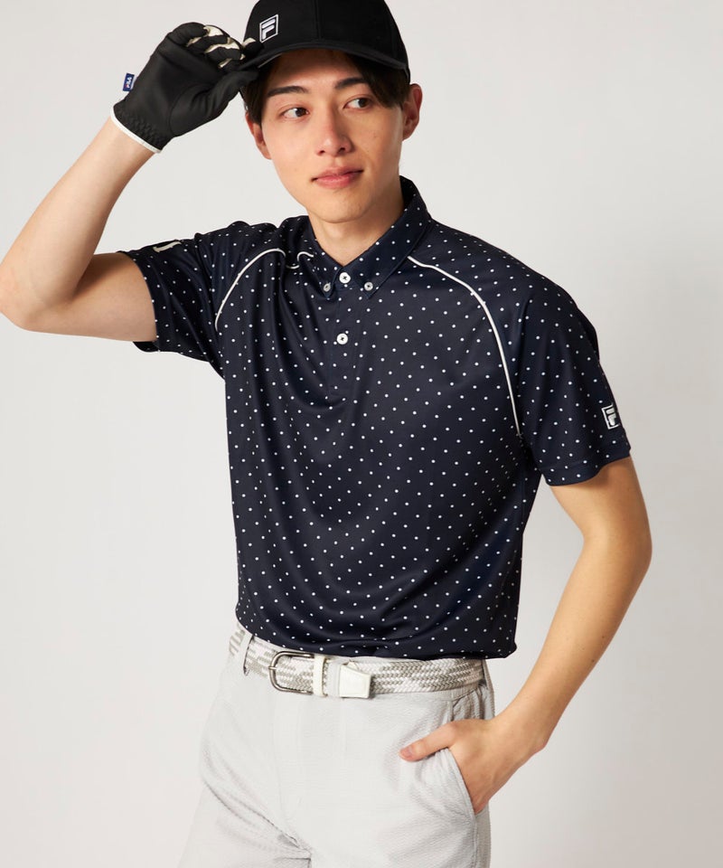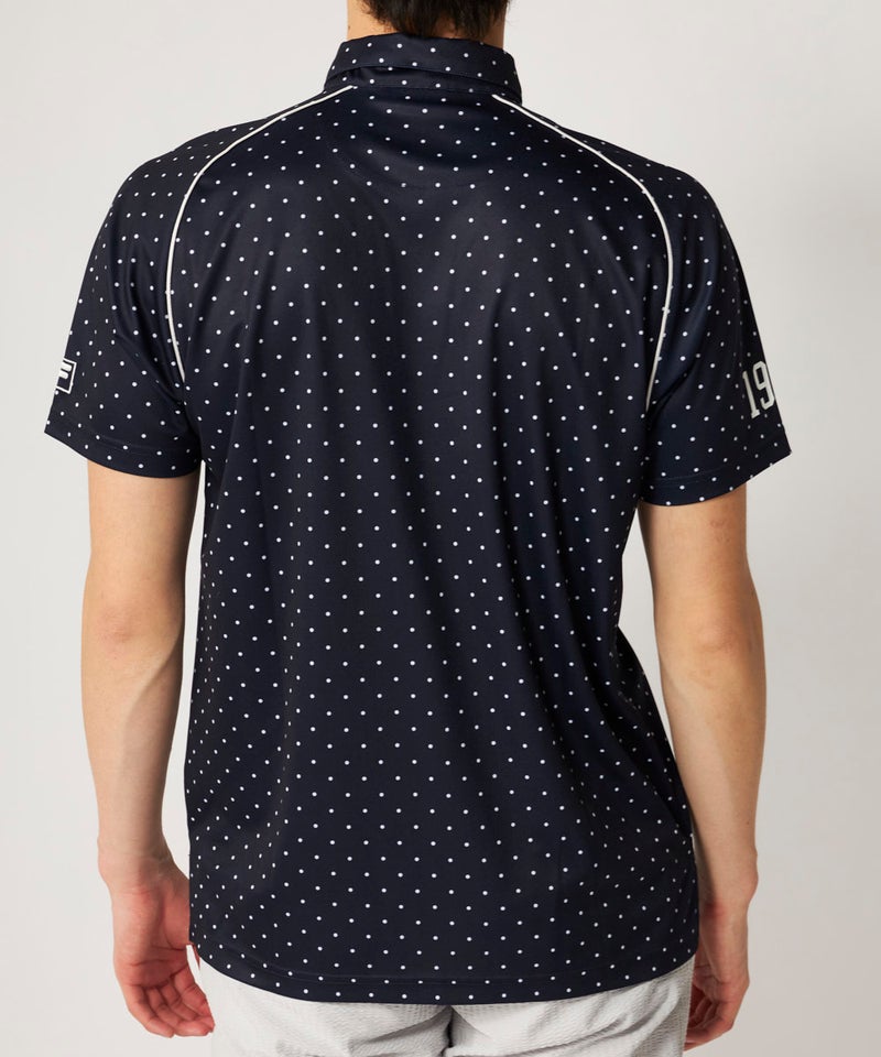 表面には外気や太陽光などの熱エネルギーを遮る「遮熱性機能」を、肌面には「接触冷感性機能」を備えたひんやり素材を使用しています。シンプルなドット柄にアームホールのパイピングがアクセントです。
