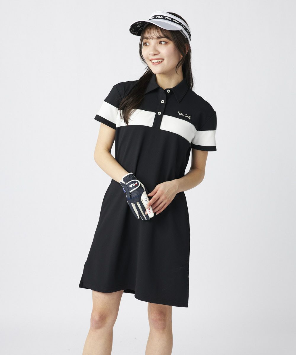 ジャガード素材 ライン入りワンピース|UVカット