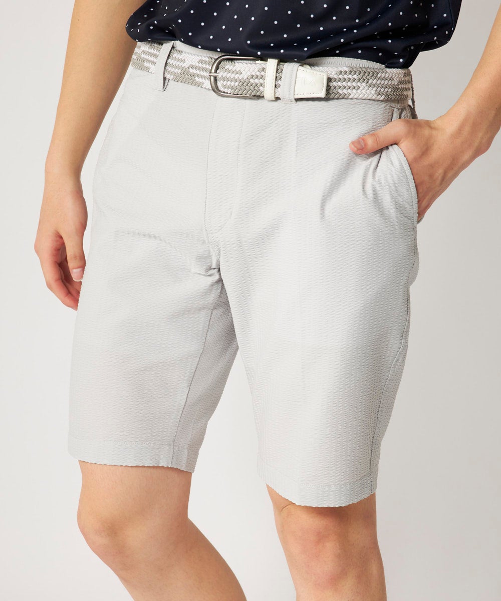 サラッとしたタッチとストレッチ性に優れたサッカー素材を使用し、抜群の肌離れのよさでベタつき感を軽減してくれます。ゆったりと履けるウエストシャーリング仕様になっています。