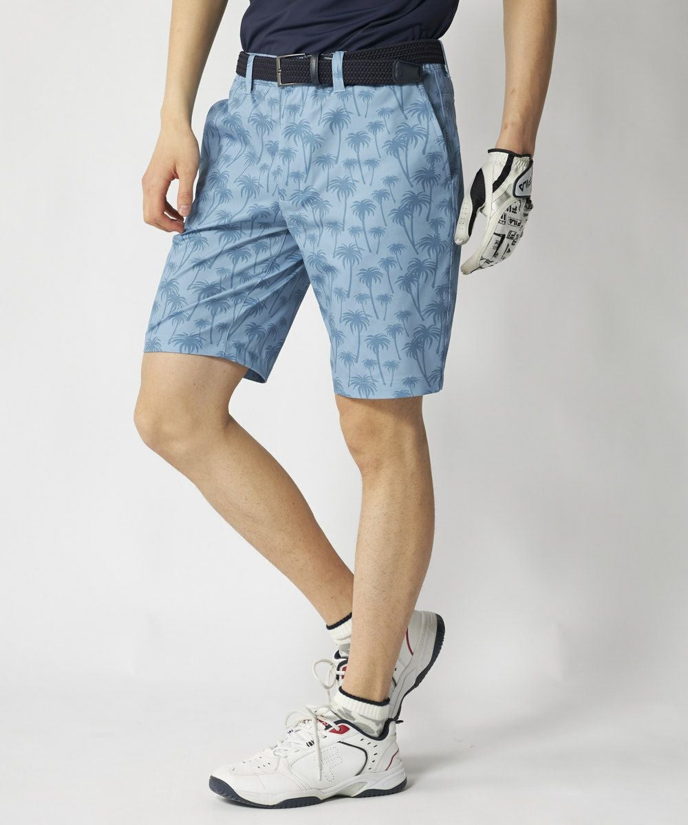グリッド状に並ぶ細かなドット孔による高通気性を持つ素材を使用しています。蒸れ感を軽減し軽量で優れたストレッチ性、夏に最適なショートパンツです。トーナルカラー配色のパームツリー柄プリントデザインです。