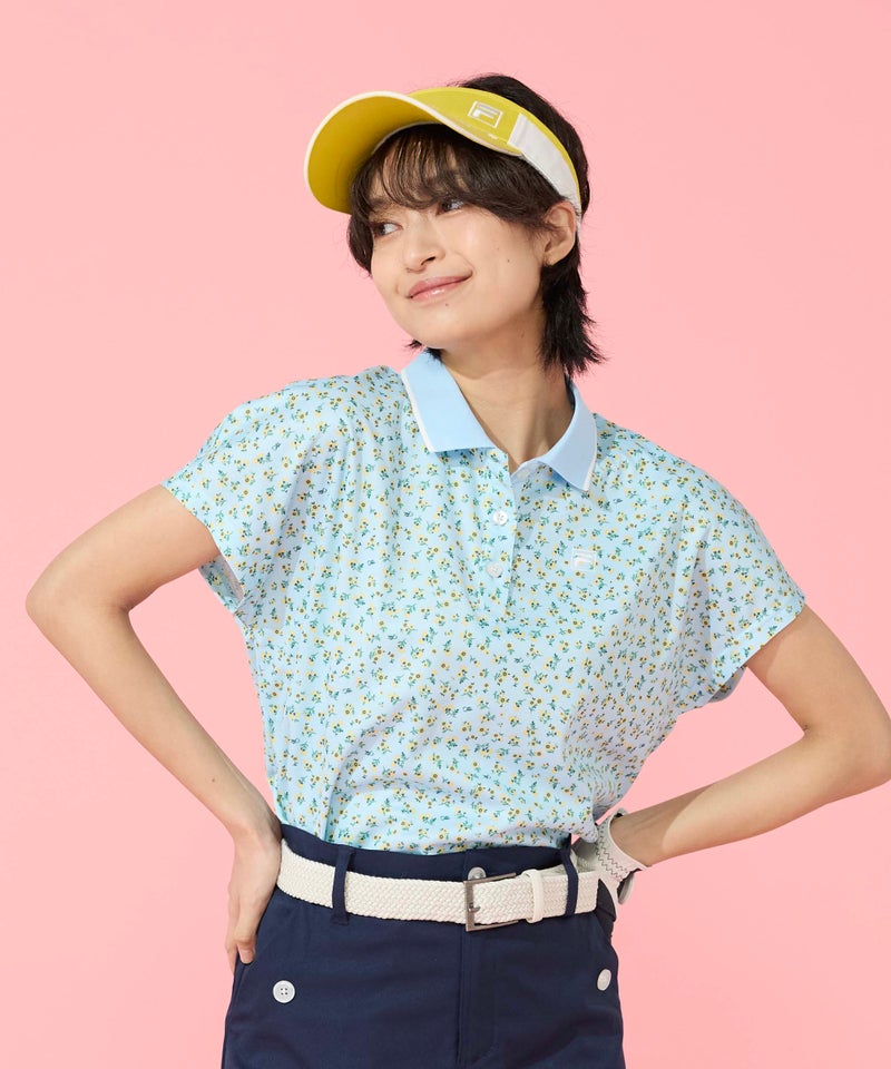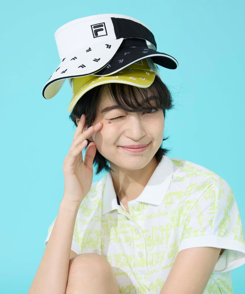 総柄のブランドロゴが、スポーティーかつ華やかな表情を作ります。バイザーならではの開放感と、FILAらしいグラフィカルなデザインが融合。サイドからのシルエットも美しく、スイング時もスマートな印象を崩しません。