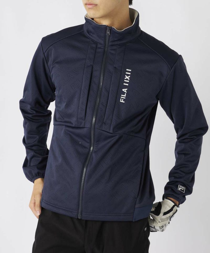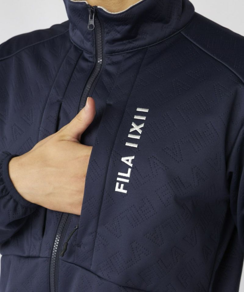 ストレッチ性の高いFILAオリジナル柄でキルティングを施した3層ボンディング素材を使用。外からの冷たい風を防ぐ防風機能と、体温を逃さない保温性を両立。ボンディング特有のハリがありながら、高いストレッチ性がダイナミックなスイングをサポートし、プレー中のストレスを軽減します。軽快で暖かい、秋冬に最適な素材です。