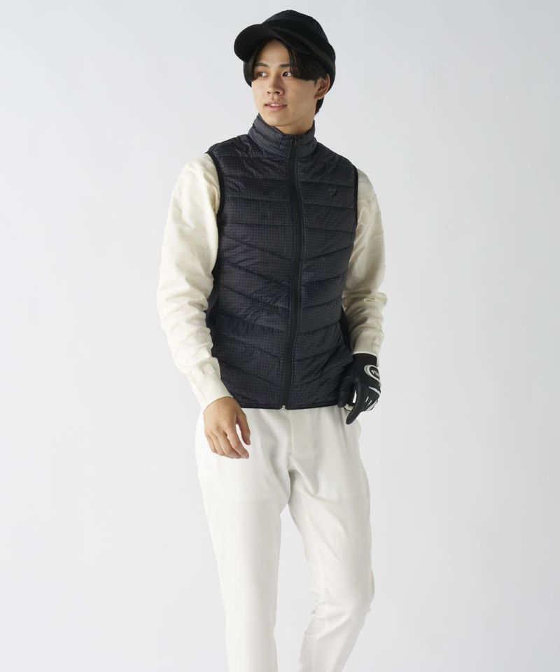中綿に天然ダウンと高機能ファイバーダウンをブレンドしたハイブリッド中綿を採用。軽量でありながら高い保温力で、体の中心部を効率よく暖めます。撥水加工により、霧や小雨にも対応し、濡れにくく乾きやすいのでお手入れも容易です。脇部分にはストレッチ素材を使用し、腕の可動域を最大化し、スイングを妨げません。