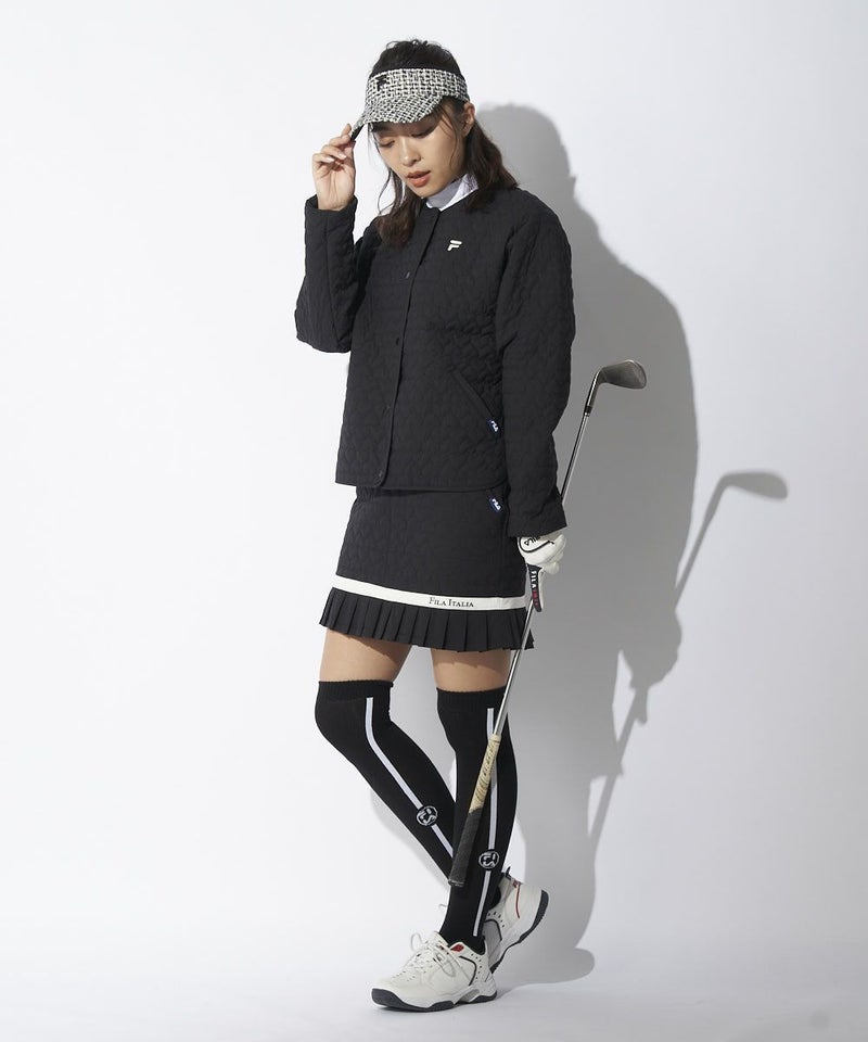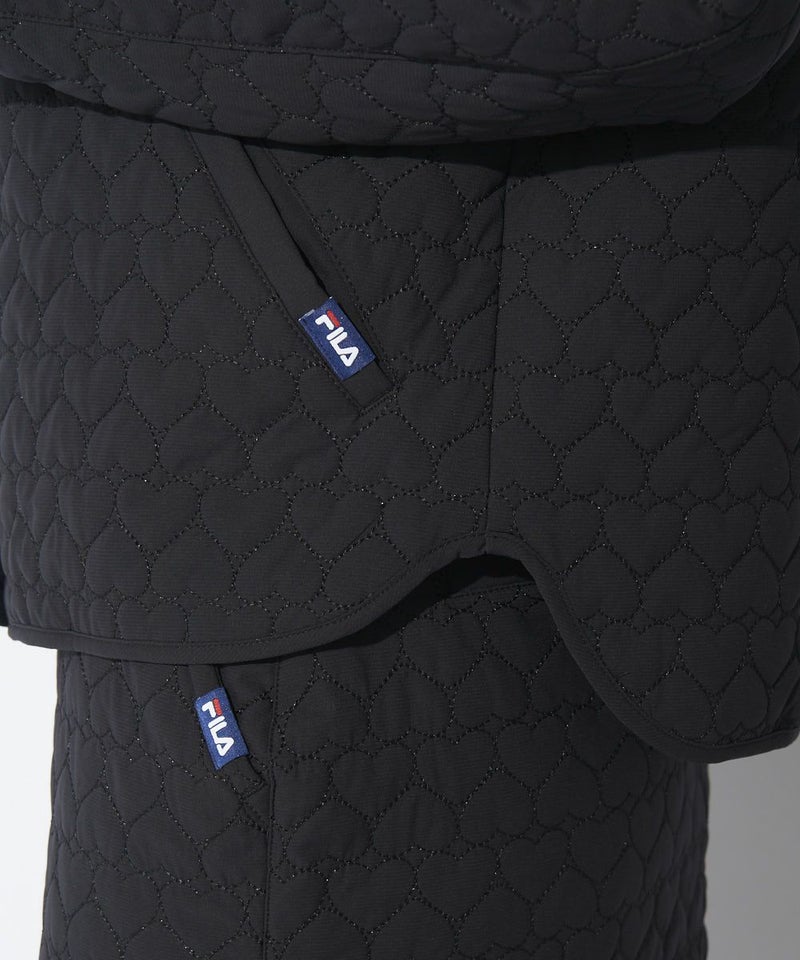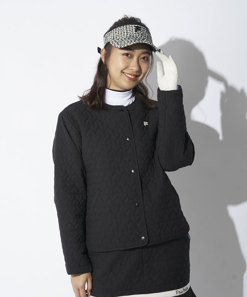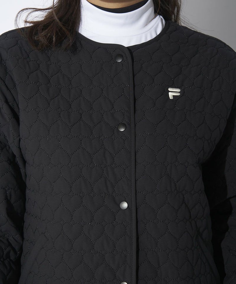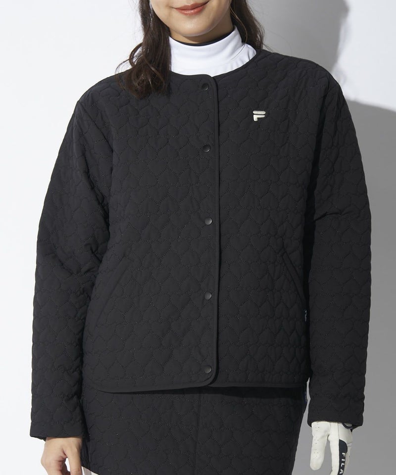 中綿ノーカラーブルゾン/キルティング/ハート柄|4WAYストレッチ/撥水加工