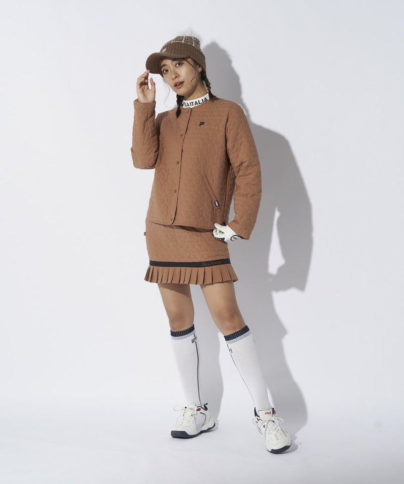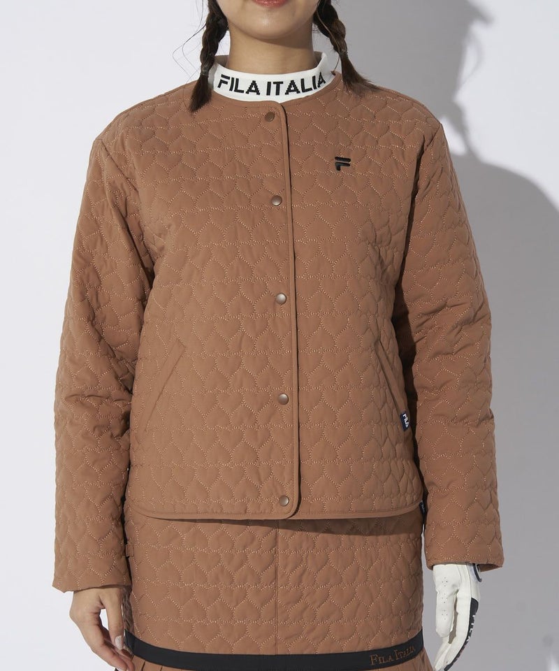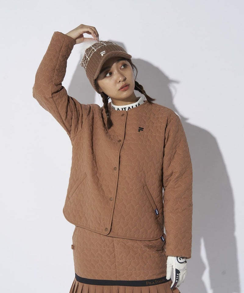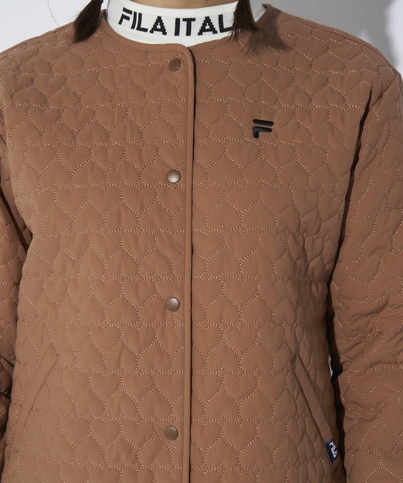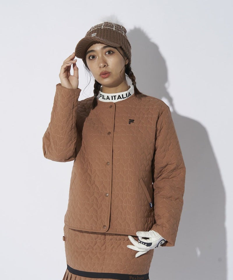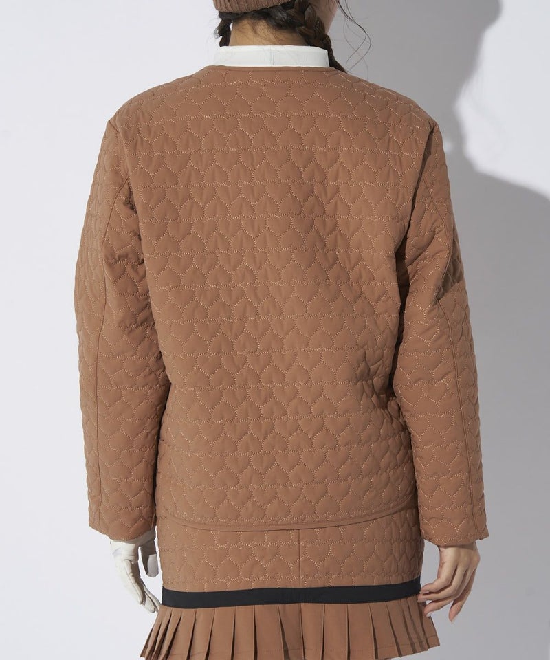 中綿ノーカラーブルゾン/キルティング/ハート柄|4WAYストレッチ/撥水加工