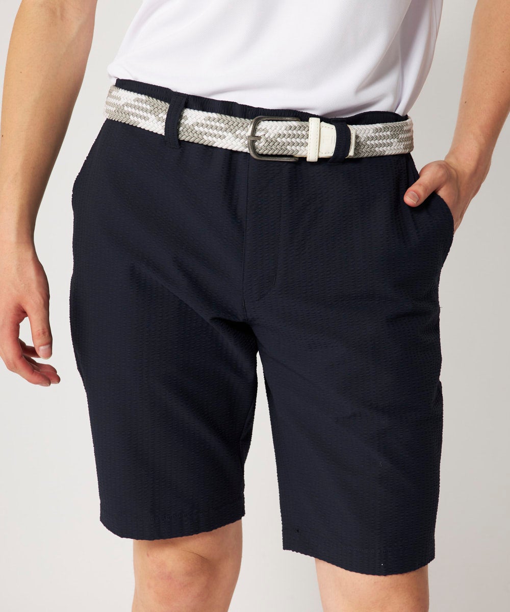 ウエスト部分には、適度なフィット感とリラックスした穿き心地を両立させる「ウエストシャーリング(ゴム)仕様」を導入。プレー中のあらゆる動きに柔軟に対応し、窮屈さを感じさせません。シアサッカーのナチュラルな風合いが、スポーティーな中に大人のクラス感を添え、膝上の絶妙な丈感がスマートなシルエットを演出します。