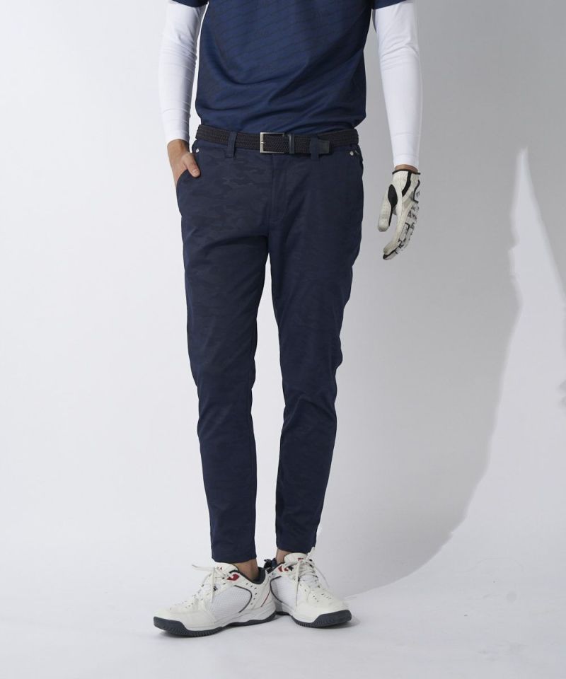 裾上げいらずの9分丈仕様。細身のテーパードシルエットで収納に便利なダブルポケット付き。オリジナルDカンと腰裏に滑り止めが付きます。