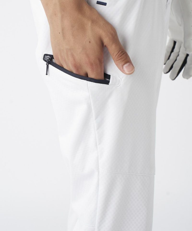 極薄素材に防風フィルムとメッシュをボンディングした「ウインドガードライト」素材を採用。軽量性と確かな防風性を兼ね備え、冷たい風から足元を保護します。さらに、4方向に伸びる優れた4WAYストレッチ性が、屈伸やスイングなどあらゆる動きをスムーズにサポートし、冬のゴルフも快適な着心地を提供します。