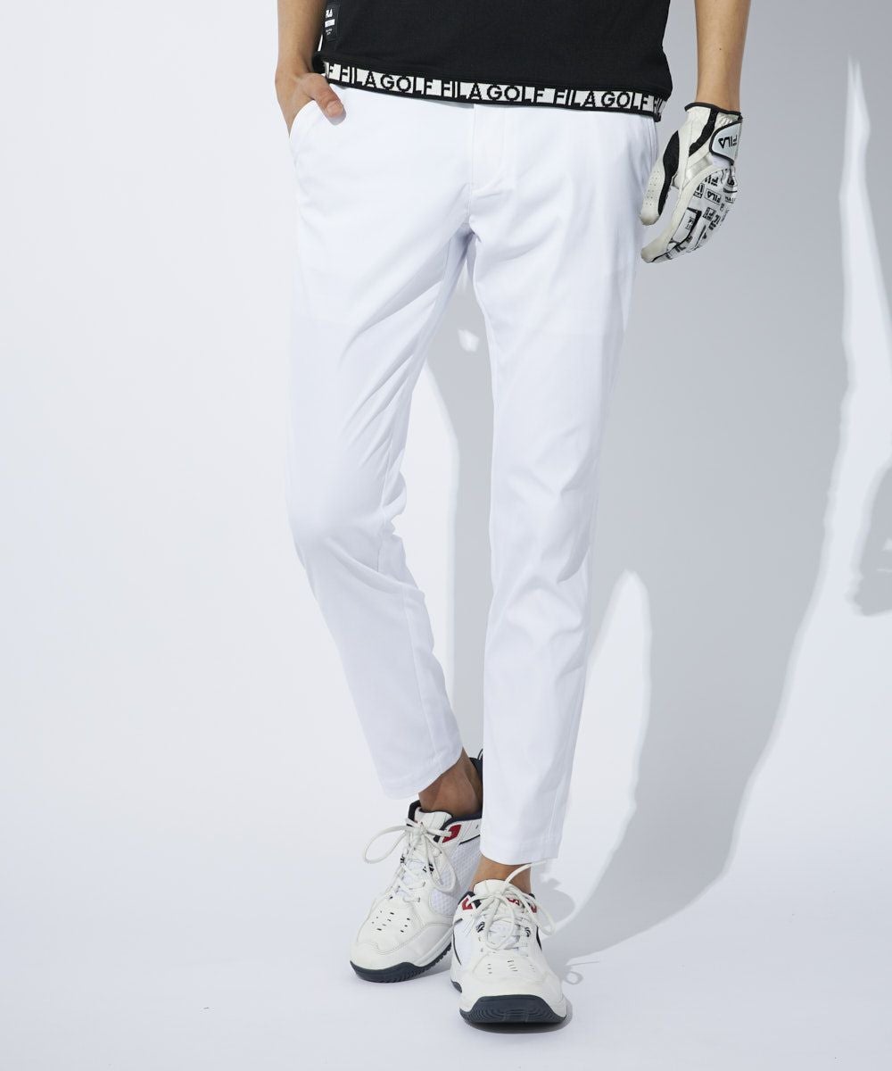 【NET限定販売アイテム】着回しやすいベーシックな9分丈パンツが登場!すっきりしたテーパードシルエットでストレッチ性に優れており、動きやすくスマートにプレーできます。無地なので普段使いもしやすい万能アイテムは柄のシャツを合わせたり、ソックスを見せたりしてコーディネートを楽しめます。また、ご家庭の洗濯機で洗えるのも嬉しいポイント!ポケットは4つあり、FILAのピスネームや刺繍の小さなディティールが効いており、シャツが出にくいように腰裏には滑り止めがついています。