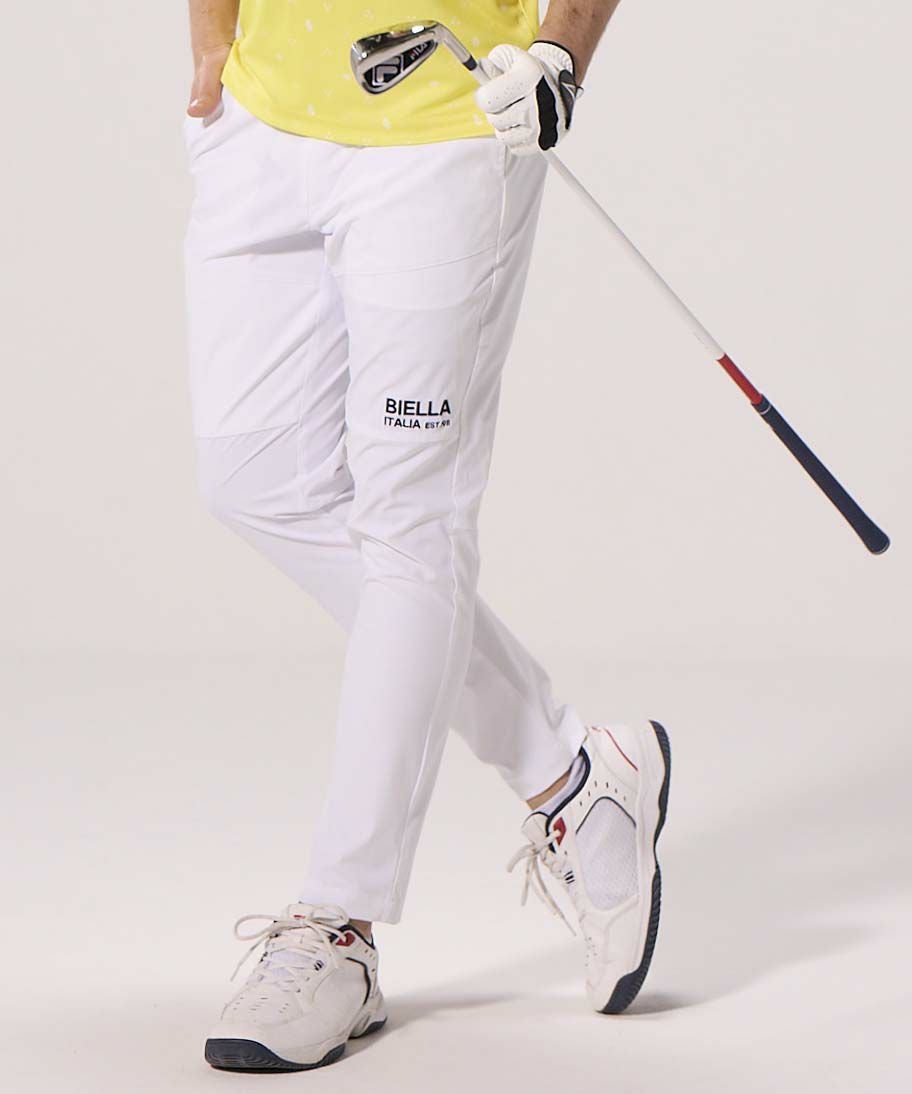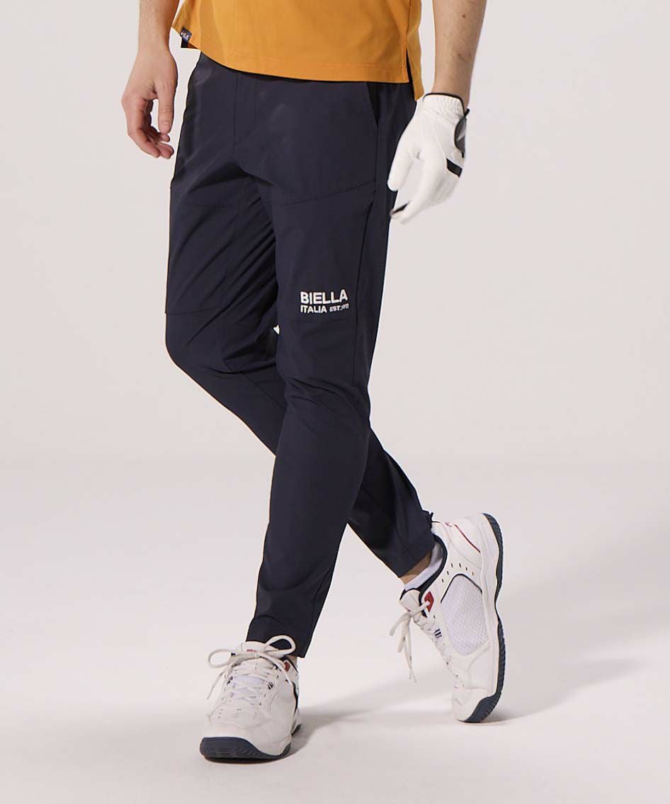 シンプルながらも洗練されたデザインで、左腿部分に「BIELLA ITALIA EST. 1911」のロゴが施されており、スポーティーな印象を演出しています。