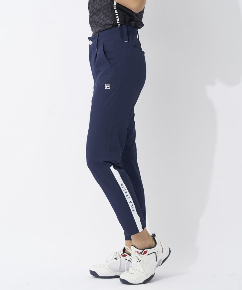 ストレッチ性に優れた、薄手の軽やかな素材を採用したクロップドジョガーパンツ。裏面が凹凸状で、肌に張り付かず快適です。左裾のライン使いとジャガードのウエストリブでアクセント。