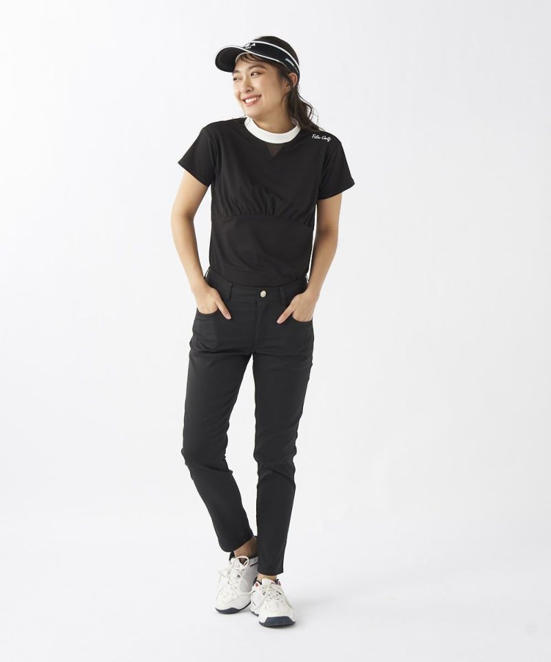 ストレッチ性に富んだ吸水撥水素材を使用。9分丈で裾上げいらず。裾口から風がとおり、涼しく着用できます。