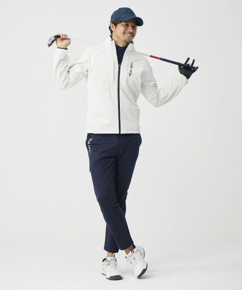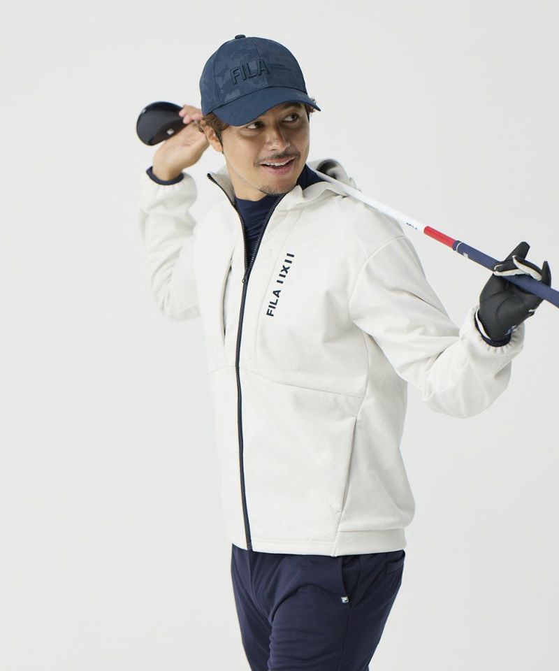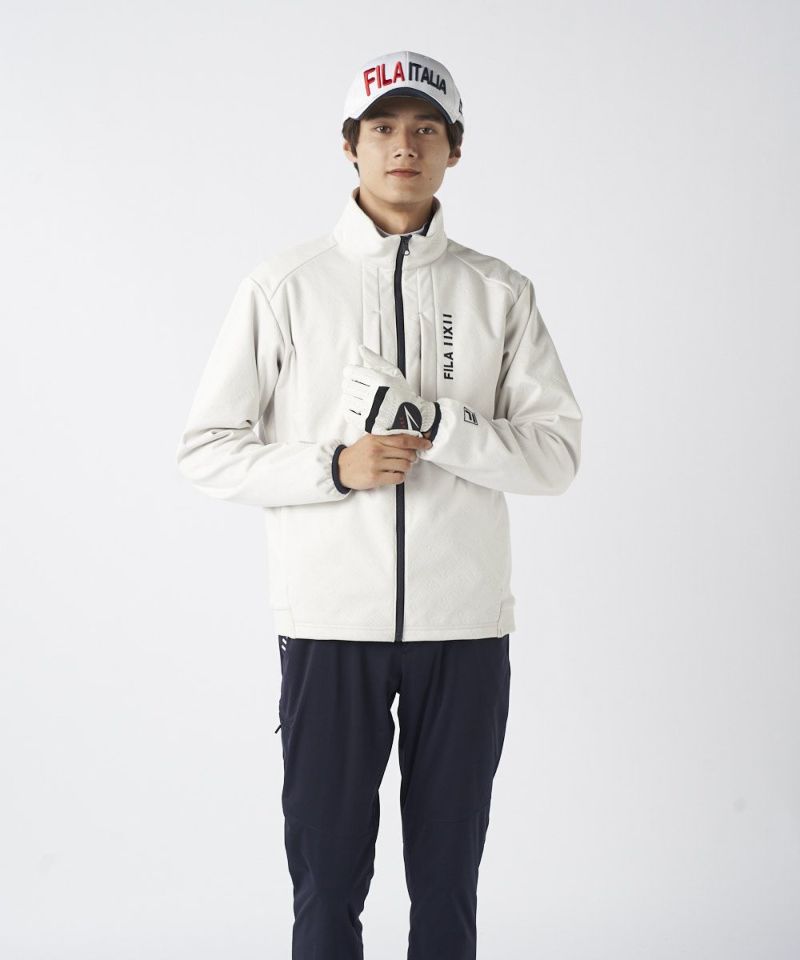 ストレッチ性の高いFILAオリジナル柄でキルティングを施した3層ボンディング素材を使用。外からの冷たい風を防ぐ防風機能と、体温を逃さない保温性を両立。ボンディング特有のハリがありながら、高いストレッチ性がダイナミックなスイングをサポートし、プレー中のストレスを軽減します。軽快で暖かい、秋冬に最適な素材です。