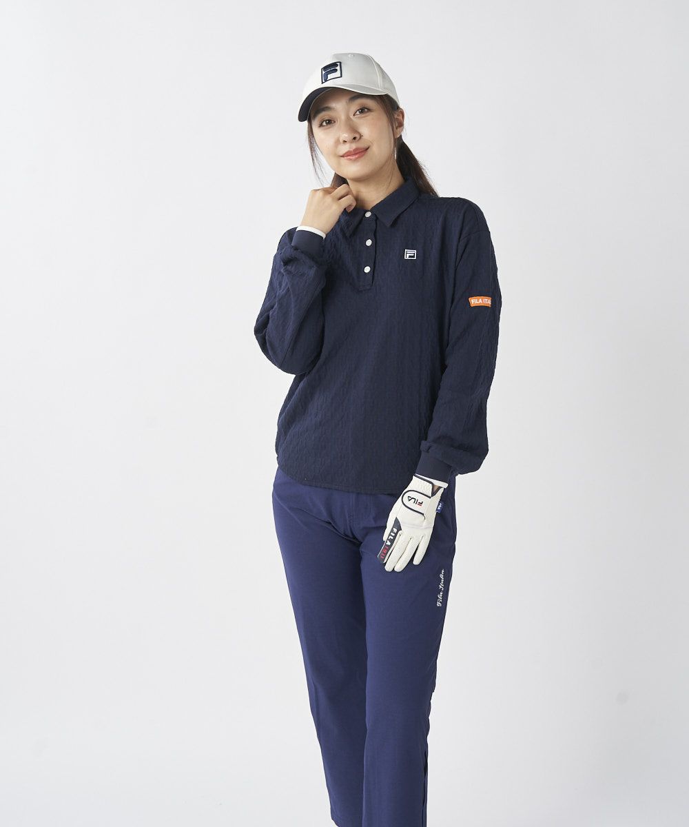 編地で魅せる立体感。一枚でも映える、洗練ロゴ長袖シャツ ロゴ柄長袖シャツ