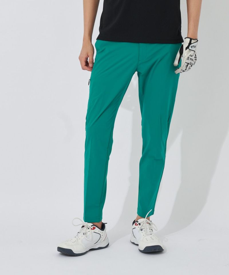すっきりとしたシルエットで、9分丈のテーパードパンツ。