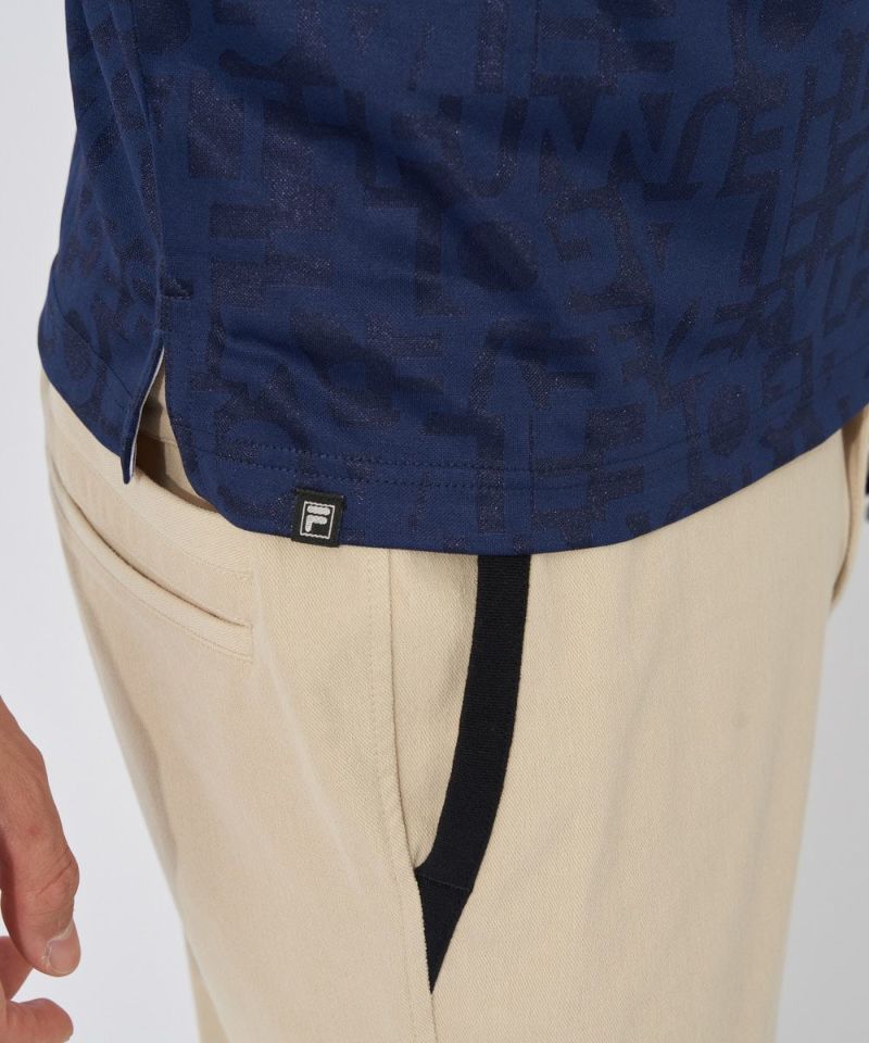 エコに配慮したリサイクル素材を使用。タイポグラフィックで表現したジャガード素材のシャツとVネックインナーとのセットアイテム。衿付けのヘリテージストライプテープがアクセントになってます、裾にスリットを付けて着用時にお腹周りのシワを軽減させます。