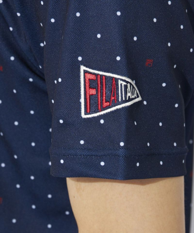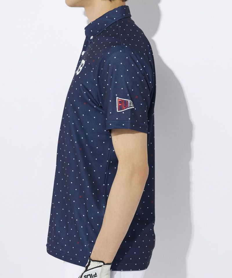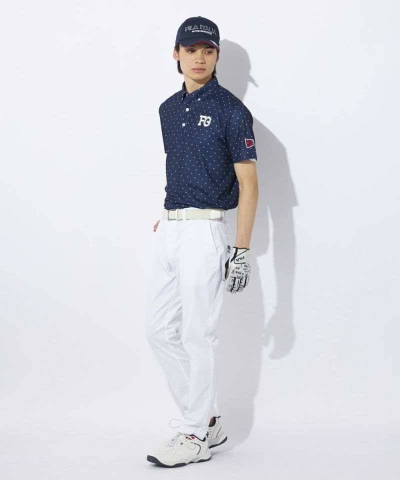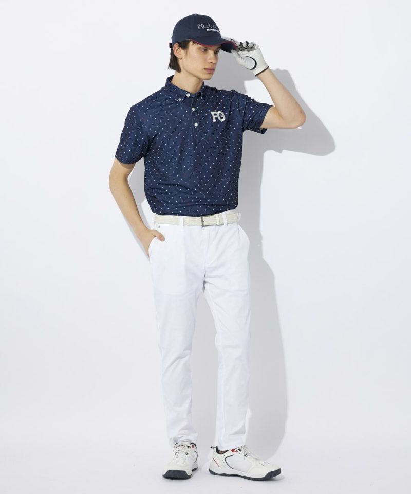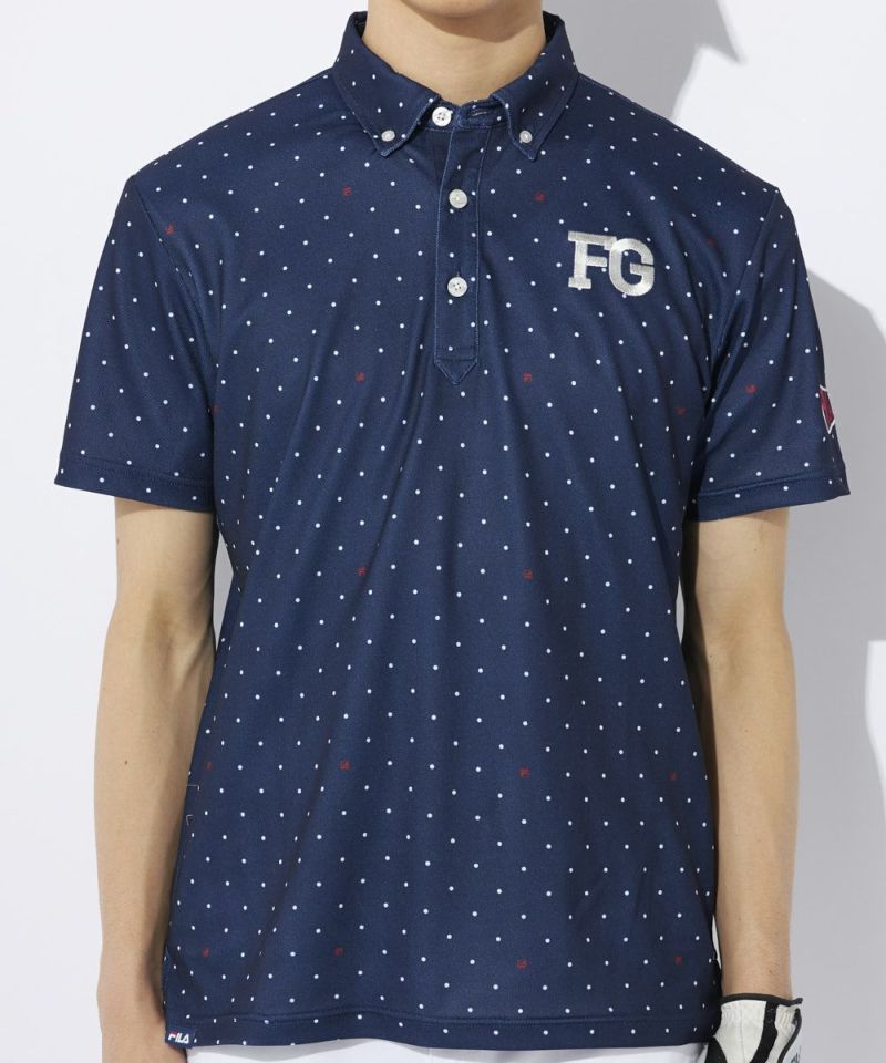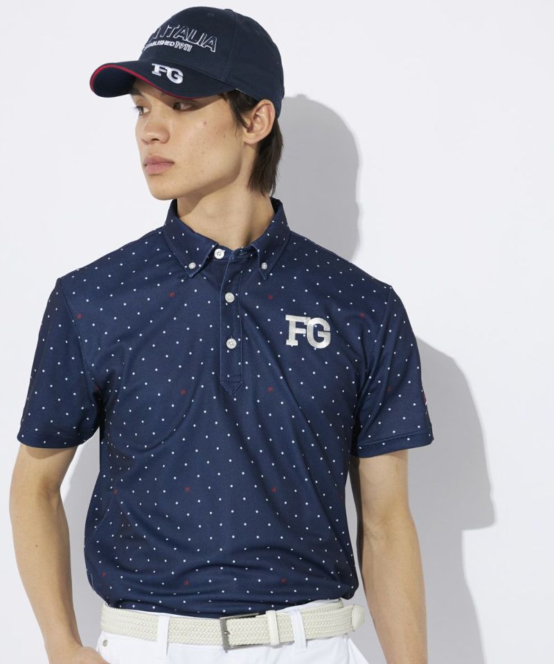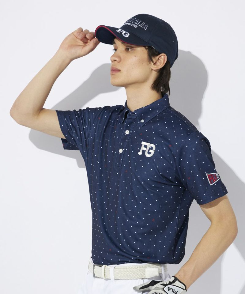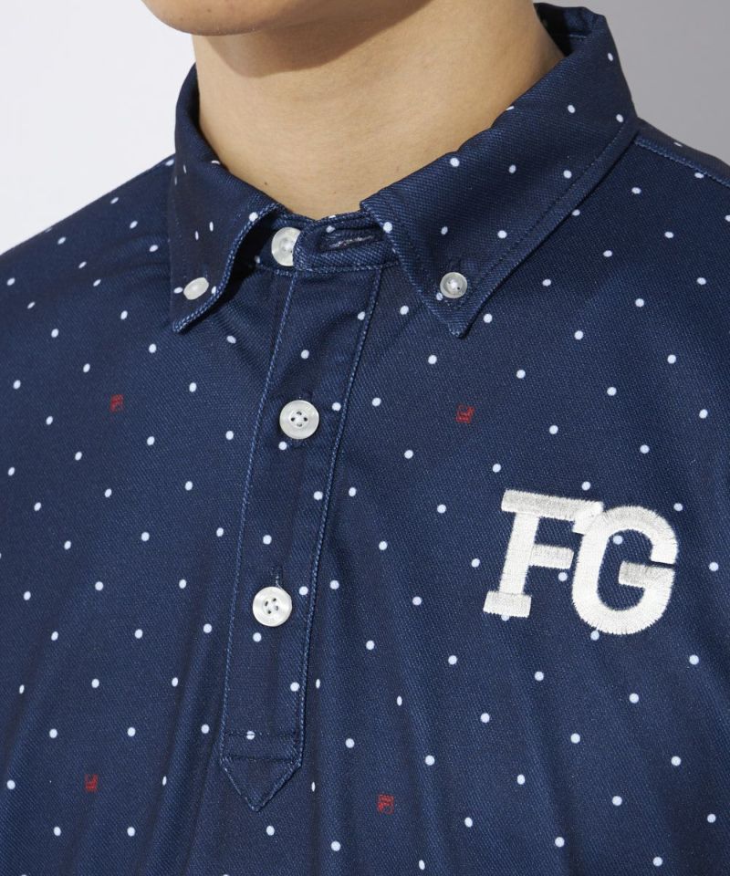 夏をイメージさせるドット柄は、シンプルで合わせやすい半袖シャツに。また、胸元にFG刺繍と左袖にオリジナルカートモチーフ刺繍が入ることで、シンプル過ぎないデザインに仕上がりました。リサイクル素材のカノコを使用することで、夏場でも涼しく過ごせます。裾にスリットを付けて着用時にお腹周りのシワを軽減させます。