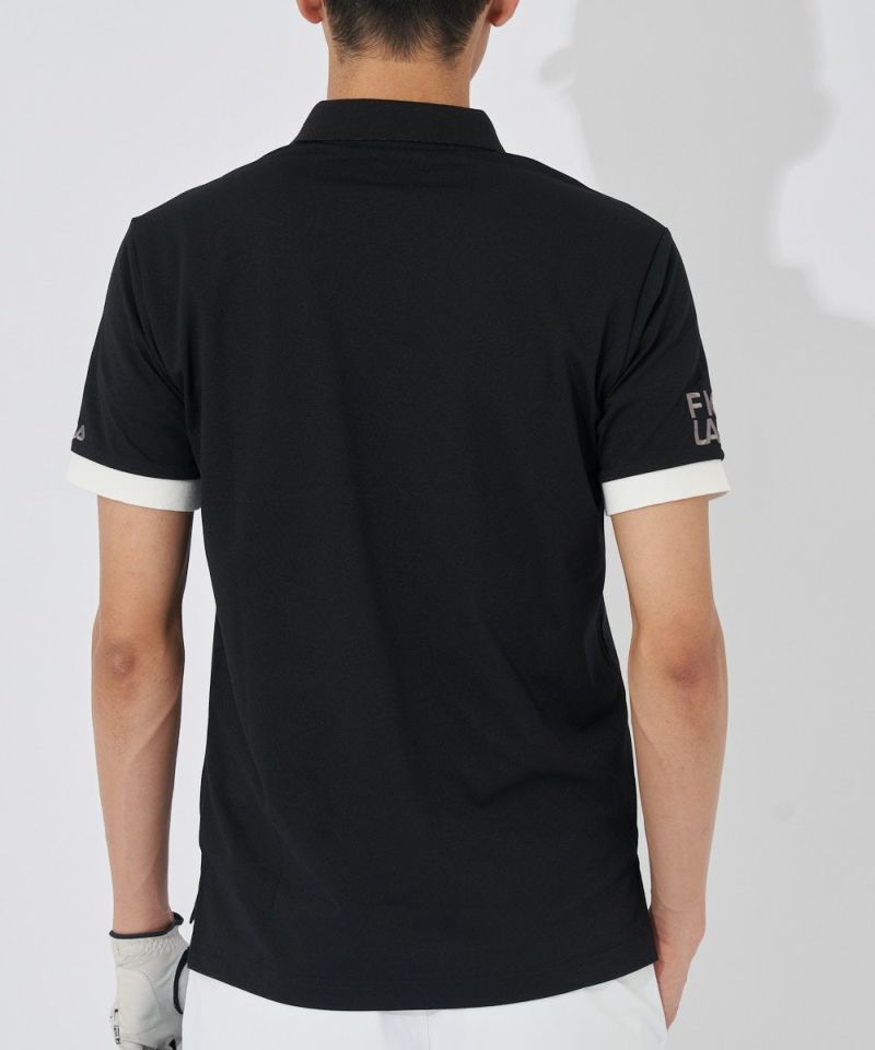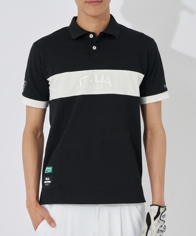 ストレッチカノコを使用した半袖シャツ。FILAらしい配色ライン切替デザインです。裾にスリットを付けて着用時にお腹周りのシワを軽減させます。FILA刺繍とトーントーンロゴ刺繍、FILA GOLF刺繍が入ります。FILAオリジナルの織りネームが付いています。
