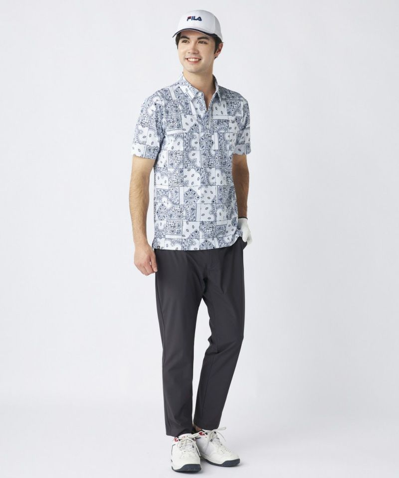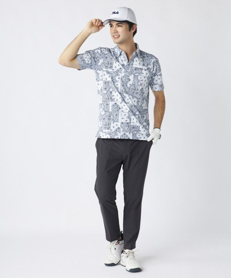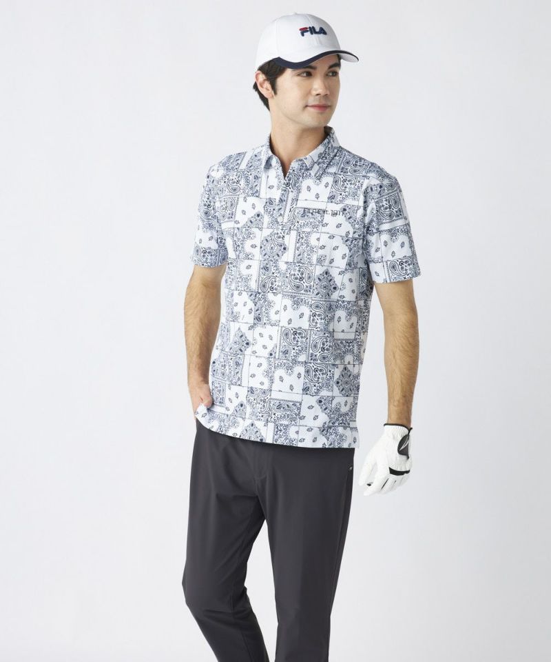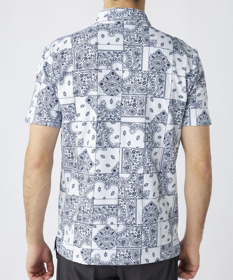 ペイズリー柄をランダムにいれた柄で、おしゃれな一枚です。シンプルなボトムスと合わせたコーディネートがおすすめです。春や秋にはインナーとして襟もとに柄を見せるのもおしゃれです。