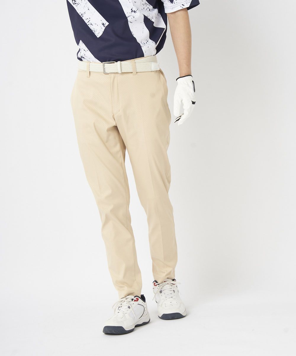シンプルながらも細かな柄が施されたゴルフパンツで、上品で洗練された印象を演出します。