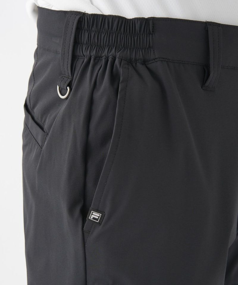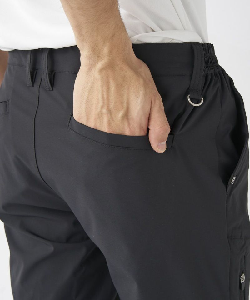 撥水コーティング加工で雨をしっかりガード。天候が変わりやすいゴルフシーンでも安心。裾上げいらずの9分丈仕様に加え、細身のテーパドシルエット。すっきりとしたシルエットで、スタイルアップも叶います。