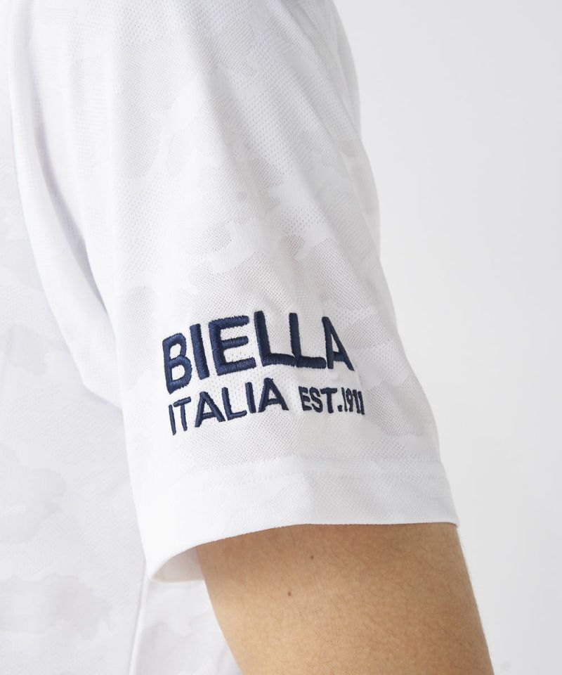 袖には「BIELLA ITALIA EST. 1911」のロゴを刺繍で入れており、肩にはステッチを施した、細部までこだわったデザインに。